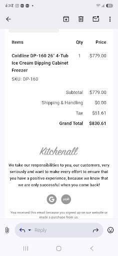 Read moreIf I could give 0 stars, I would. This company informed me a few days ago that our deli case would arrive today between the times of, 9am-10:30am. We arrived to our location at 8:30am. We waited hour, after hour. We called constantly asking for our deli case. The words from each employee, Judy, Cynthia and Victor, said to us, " Just wait 30 minutes more, the driver is on his way." At 11:14, we called again and we asked for a manager which was said to be Victor. Victor, assured us that it would only be 20 more minutes. At 11:41, the driver called our company and said that he was half hour away. We called back to this company and spoke to Steve, which was the head manager, and all Steve could say was, "mistakes happen, and I am sorry." Steve admitted to our company that we should have been informed about our package arriving late, but at no point did Cynthia, Victor or Judy say that our package was not on schedule. Our owner stated to Steve that he should dismiss one of the three employees for the day due to their incompetence for not informimg us about our delivery. Words were said between our owner and Steve. At the end of the conversation, Steve decided to cancel our order at 11:50. And at such moment, our owner decided to say, "drop dead Steve." This response occured because he canceled our order without our concent. We called back asking, how can a manager make a decision for his customers? How can a manager cancel an order without the concent of the customer? Again, all Steve could say was, "I am sorry, mistakes happen." We asked Steve if he would rather lose a customer than just deliever our deli case. And his answer was, nothing is worth the price of an employee and their safety. If Steve had actually listened, then none of this would have occured. To him, he understood everything, yet he canceled the entire order because he felt like we were unsatisfied. How else would we feel? Happy? Like I said, If I could give 0 stars, I would. Whatever happened to customers are always right? We will never order from this company again. Thank you for wasting our time and money. (∩_∩) Oh, just so you know, we ordered one right now from another company that is $200 dollars less and is bigger in length, better and is prettier than the one we had ordered from...