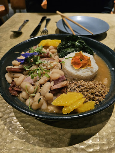 The food itself was good but the menu felt a bit all over the place. For example the bean stew dish didn't feel like it complimented the sushi dishes we got. The portions for some items was incredibly small for some items and big for others.