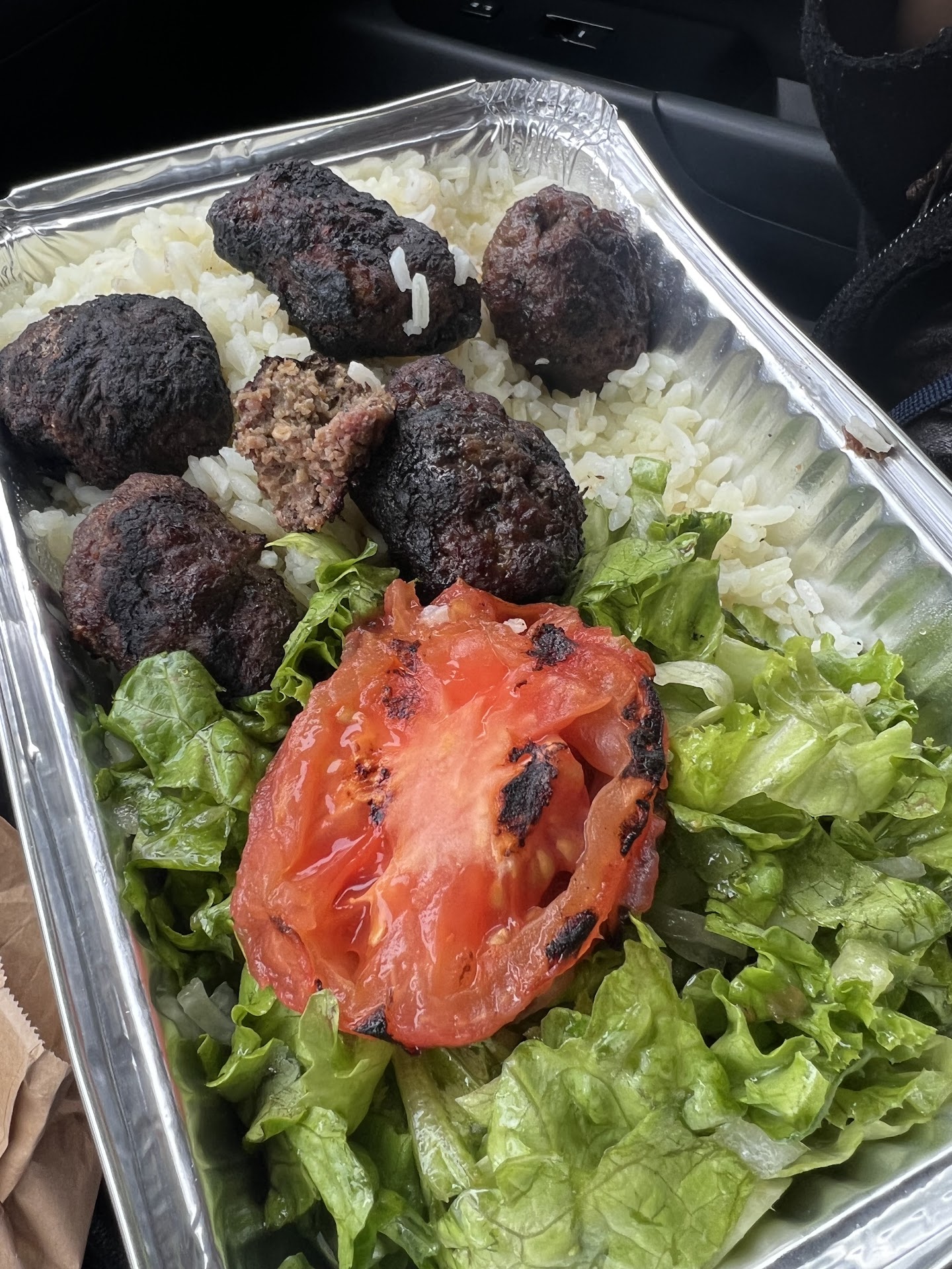 Read moreStopped by this restaurant by chance, as my wife and I were looking for a quick bite before going to Costo. Overall the food service and quality was good but overpriced. We went around 3 pm and it was completely empty inside. The owner quickly took our order and made the food within 6-8minutes as we sat inside. We ordered a mixed combo over rice and a kofte over rice. It was chuncks of chicken, minced beef kofte and lamb sausages. Their kitchen is right in front of the restaurant so we got a first hand glance to the food preparation on the grill. The meat was juicy and grilled perfectly, bed of rice that was decent, and came with bread but no sauces. The salad had a special oil-based dressing tossed with onions. Only a lone grilled sliced tomato accompanied the dish, no green pepper. Only cons are that the food portion to the price and price itself definitely could have been better. The depth of the food tray was about...