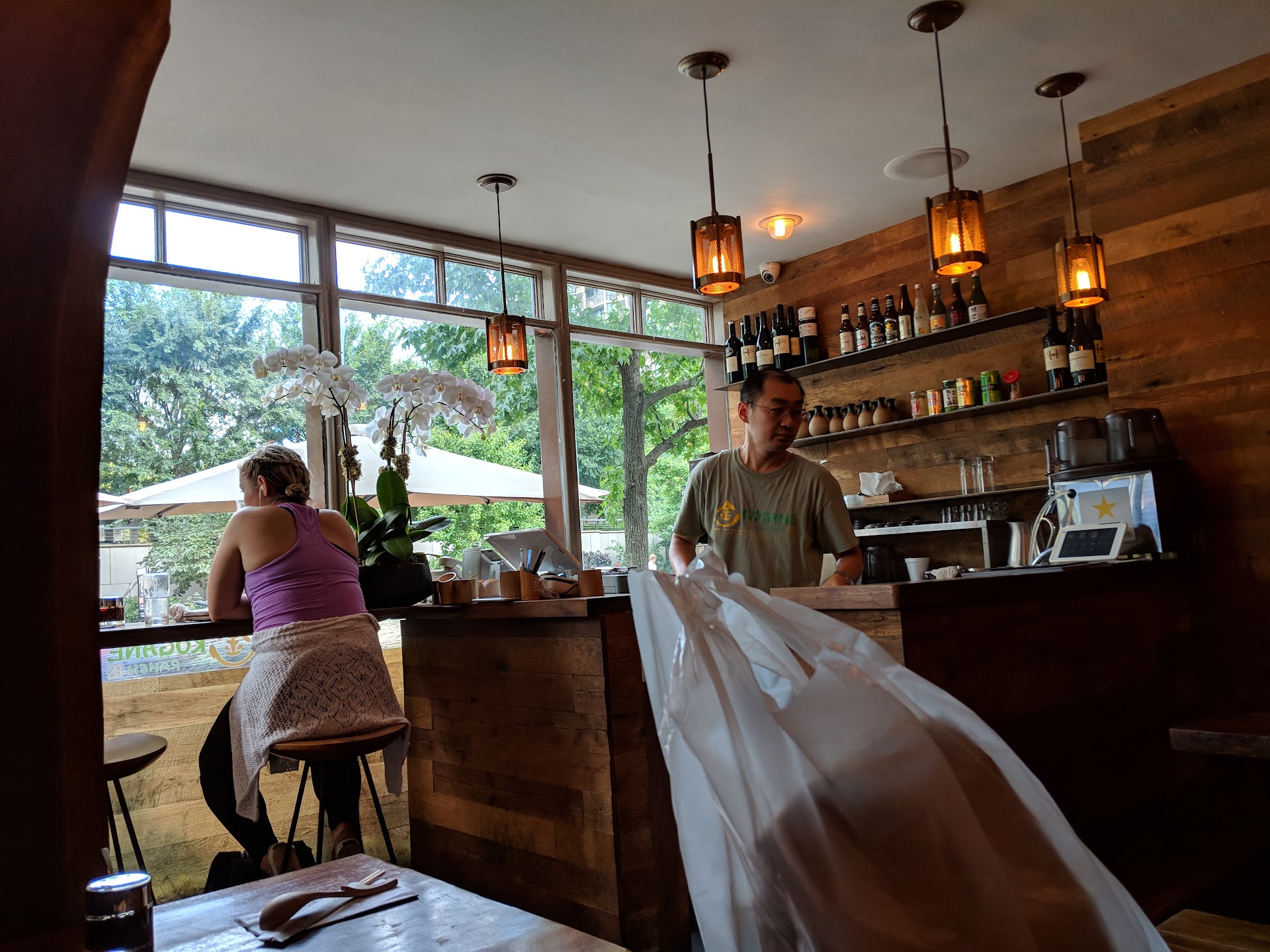 We came on a Thursday night at 7pm and they were quick to seat us for a party of 4, even though our 4th person wasn't there yet. Waters and menus were doled out very quickly, which I appreciated. My boyfriend got there within 5 minutes of us being seated and by 730pm, the place was a madhouse. The place is small to begin with the line to get seated was now out the door. The service never suffered and we never felt rushed even though there was a huge line of prospective diners, all jonesing for our seats.