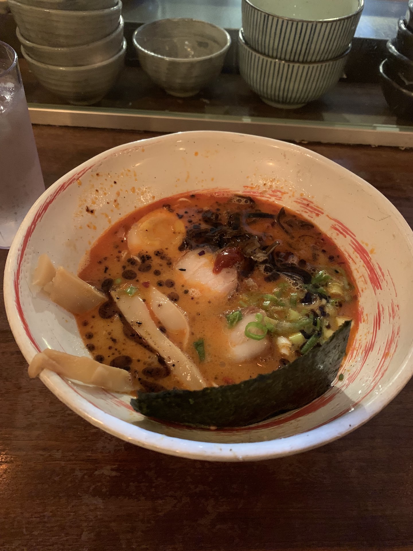 Read moreMy first ramen restaurant in New York. I had the Red (spicy) Tonkotsu Ramen. It was good. In terms of taste and quality, better than all the ramen restaurants I tried in Houston. The broth is creamy, spicy, and flavorful. The pork belly is soft and tender, melts in your mouth. The ingredients meld together quite nicely. The service was great. The owner (I believe he was) was nice. The waitress was cute and quick when taking my order and serving the ramen. Wait time was maybe 3-5 minutes. My major complaint about the place I have is the price ($13 for a bowl, $1 for tax, and $2 tip). That’s about $16 for a bowl of noodle soup. It may be New York, but $10 instead of $13 is what I think it is worth. In addition, they don’t take card if the order is below $20. Make sure you have cash if you come by yourself. Another complaint I have is the noodles. The noodles don’t absorb the broth that well. They kinda just sit in the broth, but this is a minor issue. Lastly, the soup could be more creamy, less watery. Towards the end of my meal, I felt that I was drinking spicy water. Again, not a huge deal but a minor complaint. Overall, great place. Would definitely recommend for first-timers, but wouldn’t go again and again.