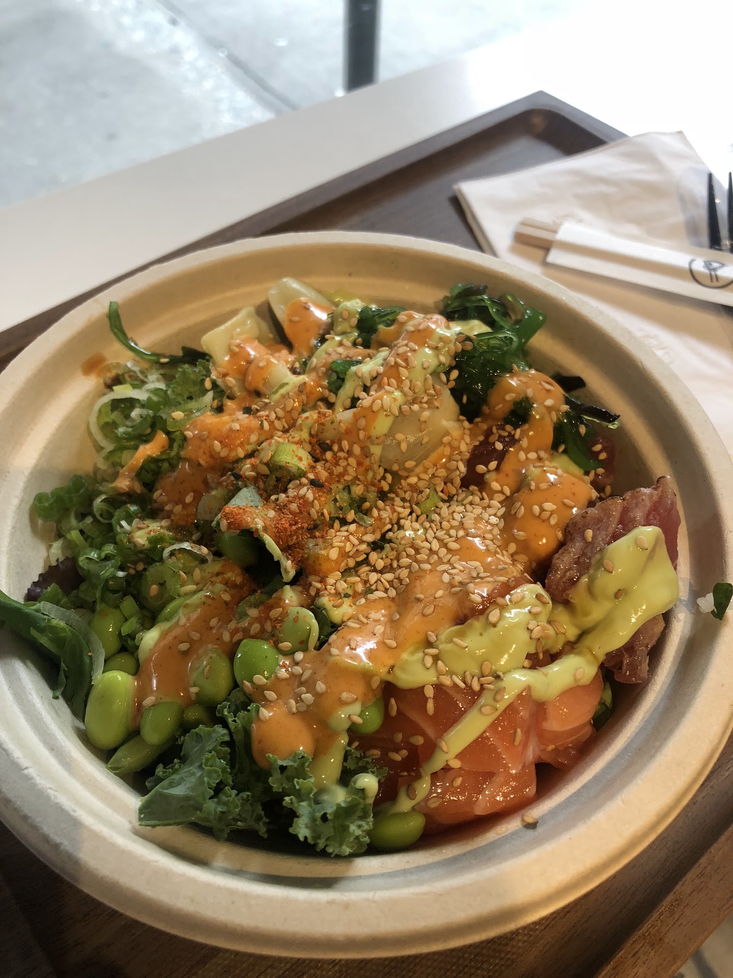 Con: 1. The price is not that reasonable as some say. 12.95 for 2 protein while other poke spots have 3 protein for 13.95. I can name some however I dont want to promote another business while talking about this one. The bowl size is a small compared to others. The selection of sauces isnt all that great. The server who assisted me (different than the person I said above) was not the nicest and gave very small portions.