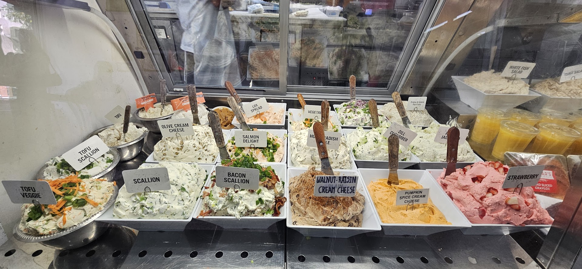 My wife and I stopped in for breakfast and I ordered two bagels, one with scallion cream cheese and lox and the other with vegetable cream cheese and lox. We got our order, and left with our bag of bagels and coffee and embarked on the 10 minute walk home. When we got home and I sat down to enjoy my bagel with cream cheese and lox, I discovered to my chagrin that the guy who filled my order has given me cream cheese but no lox. My wifeâs sandwich was similarly sans lox. We both have busy schedules and simply didnât have time to make the trek back to Kossarâs to exchange the sandwiches. So we both ate our bagels with cream cheese. Btw, I did find my receipt and it was clearly marked: âNova lox: $19.50â. So we clearly had paid for lox but didnât get any.