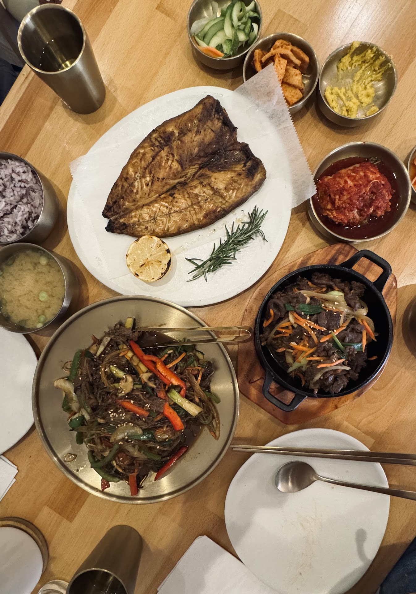 We had fish, japchae, and beef bulgogiâtwo of my favorite Korean dishes. I've tried the best japchae and beef bulgogi, so this was a hard choice. It was not bad though. I only tried the japchae and bulgogi among our orders. The japchae was a little salty, but I still liked it. The bulgogi, for some reason, lacked that certain kick. The side dishes or appetizers were not the best, but I still liked them. They were lacking something savory? Although I didn't try two of the side dishes, I think we had five if I remember correctly.