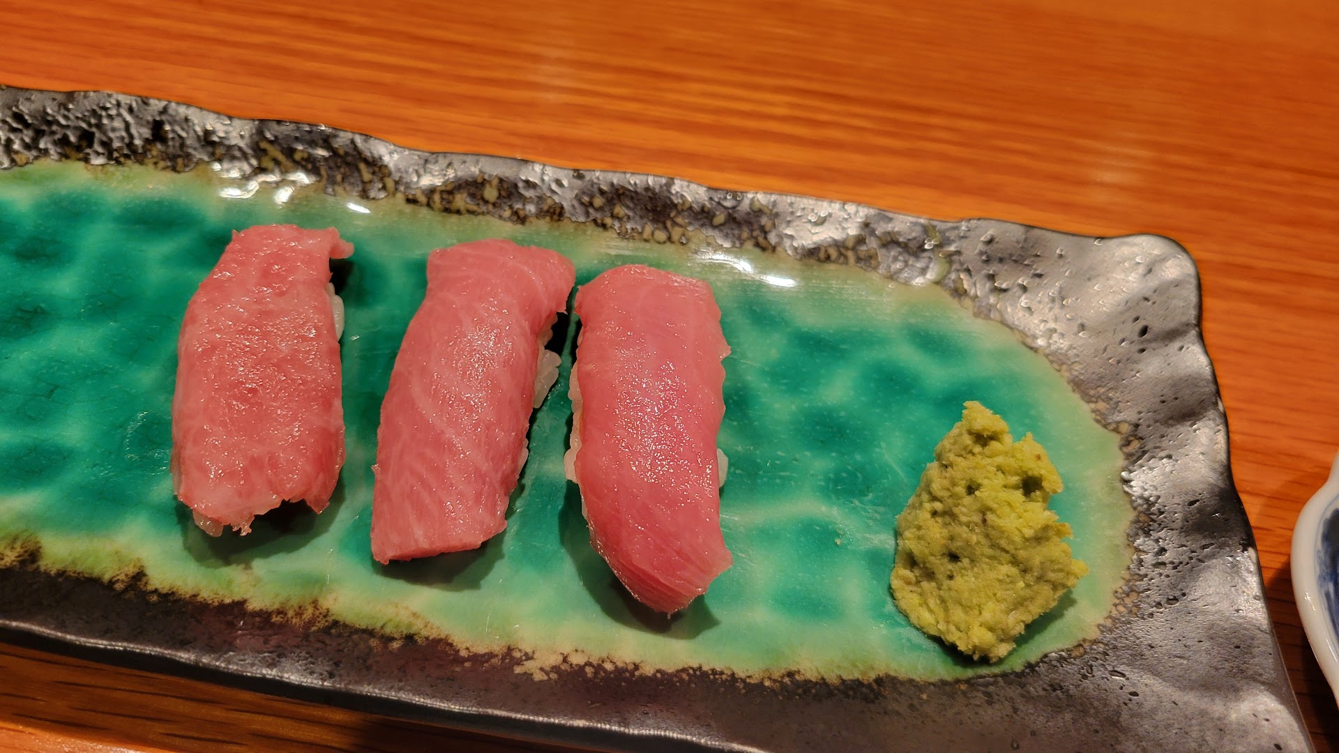 The beauty of nigiri is often in its simplicity, and the Chu Toro pictured on my blog is a great example of that. No extra toppings, a little shoyu applied, just the neta formed to the shape of the vinegered rice (as it should be).