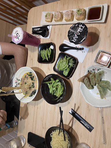 Read moreThe vibes of this place were amazing, they have these sort of private booths that make your experience a lot more private and leveled up. Although at some locations they have actual honeycomb booths, we only had just regular box ones, but i really loved the atmosphere. The food was definitely good, but I have had better elsewhere. I got the agedashi tofu (was good, but sort luke-warm, and not enough umami flavor), chili garlic edamame (was sorta mediocre in flavor but still good), side of ramen noods, vegetable dumplings (they were sort of lacking in flavor) cherry blossom jelly (so refreshing and yummy never had anything like it), and then I got a mango mille cake (was not very sweet, and the mango chunks inside were a little off putting). I also got the dragon fruit milk foam drink, which just imagine how flowers smell and thats how it tasted. The one thing i would say about this place is the service is kind of below average. Because you are in a private booth they don't know when you need something or whatever so you have this little thing to press buttons for certain things, but whenever we would press the button it would always take them 5+ minutes to come over so we ended up having to wait quite a bit because we had to wait to order, wait to order dessert, and wait to...