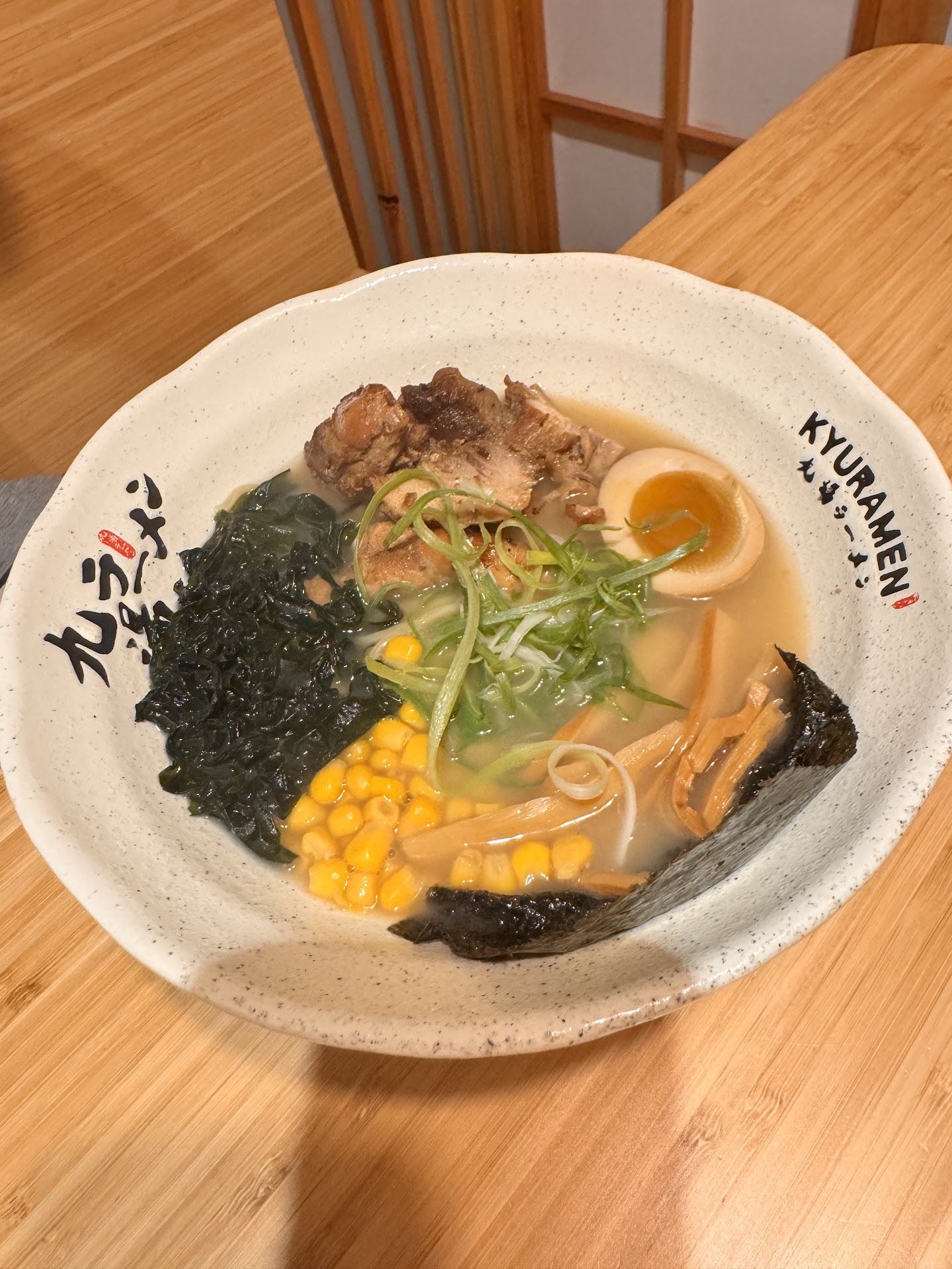This place is an absolute must-try if you enjoy ramen, or just a very good restaurant experience. From start to finish, we had an incredible time at Kyuramen. We were seated right away at lunch time on a weekday and were brought to our own enclosed booth with a curtain. The servers were extremely friendly and patient, and also made sure to clarify our order after taking it. If you need to call the server back at any point, there is a button on the table.