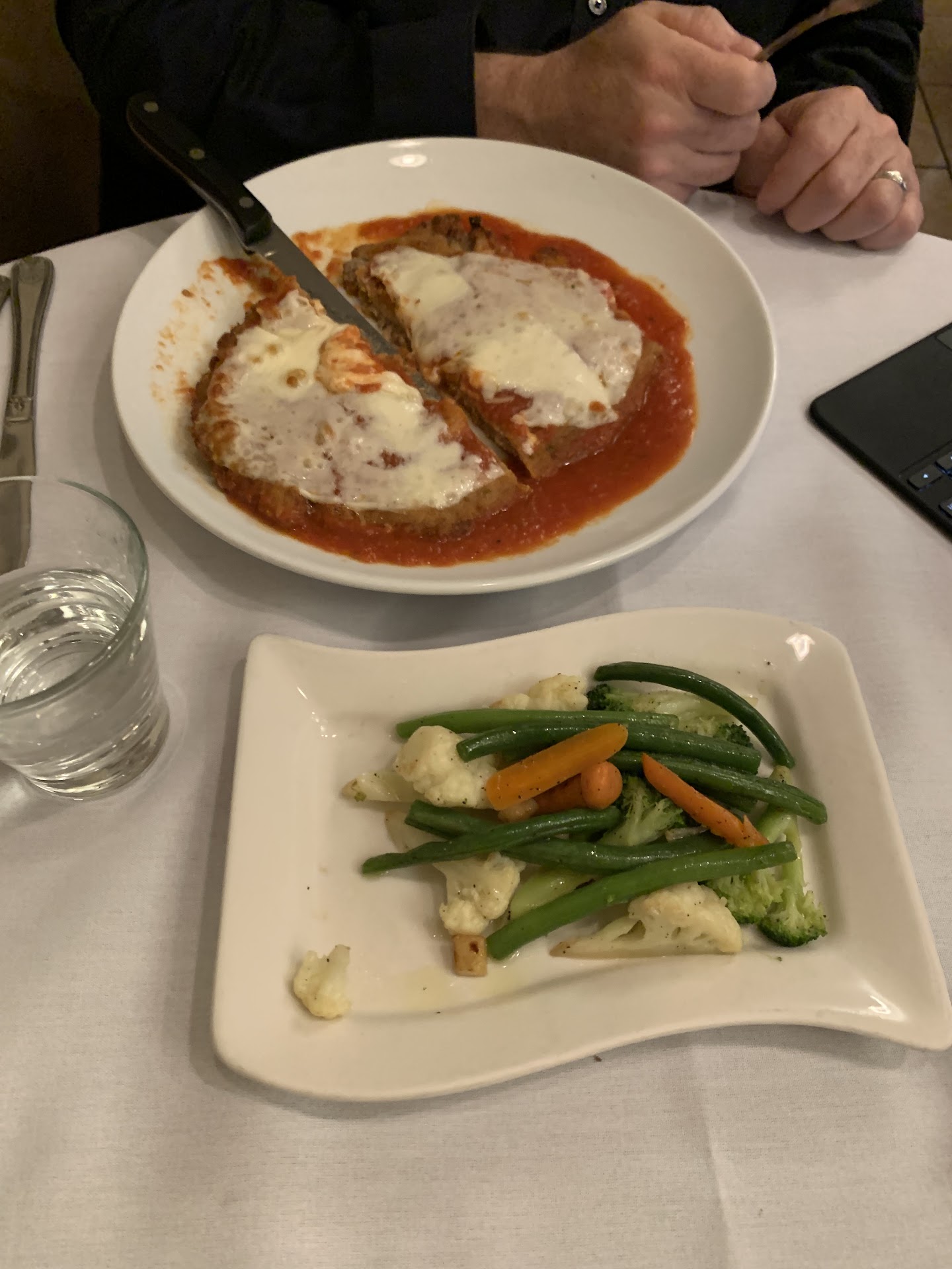 Read moreLive about two blocks away and we were looking for someplace "new" for us to enjoy on our Saturday date nights together. I saw this restaurant on my way to work today and thought this would be a nice place to try. It's close to home and local and I love good italian food so let's give it a shot I thought. This turned out to be a Great Decision!! We walked in and were immediately greeted and seated as we had reservations for two. The place was nice, modern and clean very inviting to spend some time in. Our waitress soon approached and we ordered drinks, some appetizers and our main courses. They started us off with some free italian bread dripped with vinegar, oil and some herbs which were tasty. Our appetizers of calamari and mozzarella sticks soon followed and boy was everything so fresh and well prepared. Simply delicious soft and wonderful. Our entrees then arrived and my wife's chicken franchaise filled her huge plate from side to side and the mixed vegetables on the side were steamed to perfection. My veal parmigiana with rigatoni was also huge in size and nice and thin in width all with a delectable red sause that had good flavor and consistency. We both ate heartily and still could not finish our very generous portions. Our waitress was friendly, courteous and checked on us often. what a pleasure to enjoy some fine dining so close to home. We were so full we couldn't even imagine dessert tho our waitress told us the varied selections they offered and we saw looking so delectable in the refrigerated case not far from us. Next time for sure we will try the tiramisu and cheesecake. Overall this was an excellent experience and highly enjoyable date night saturday thanks to the fantastic food and great service we were given. I highly reccomend and we can't wait to go back and be pampered...