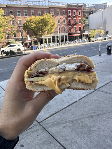 Read moreFood: The bagels here are AMAZING! They're full of flavor and very fluffy. I got the "Mr. Bagel" - 2 eggs, ham, bacon, cheese, + cream cheese (that they do not skimp out on), with an Everything bagel and it was really good! The bagel had small bits of dried onion and salt sprinkled on top to give it that extra punch and kick you normally don't expect out of a bagel. The cheese was perfectly melted and the eggs tasted great. 10/10 on the bagel! Service: Only reason for the 4 star is because when I asked to add cream cheese to the bagel after I finished placing my order, they somewhat threw a fit about that and were a bit rude. Atmosphere: Very typical and what you'd expect from a breakfast bagel shop. The smell of sweet bagels the moment you walk in. Overall, amazing bagels and would def...