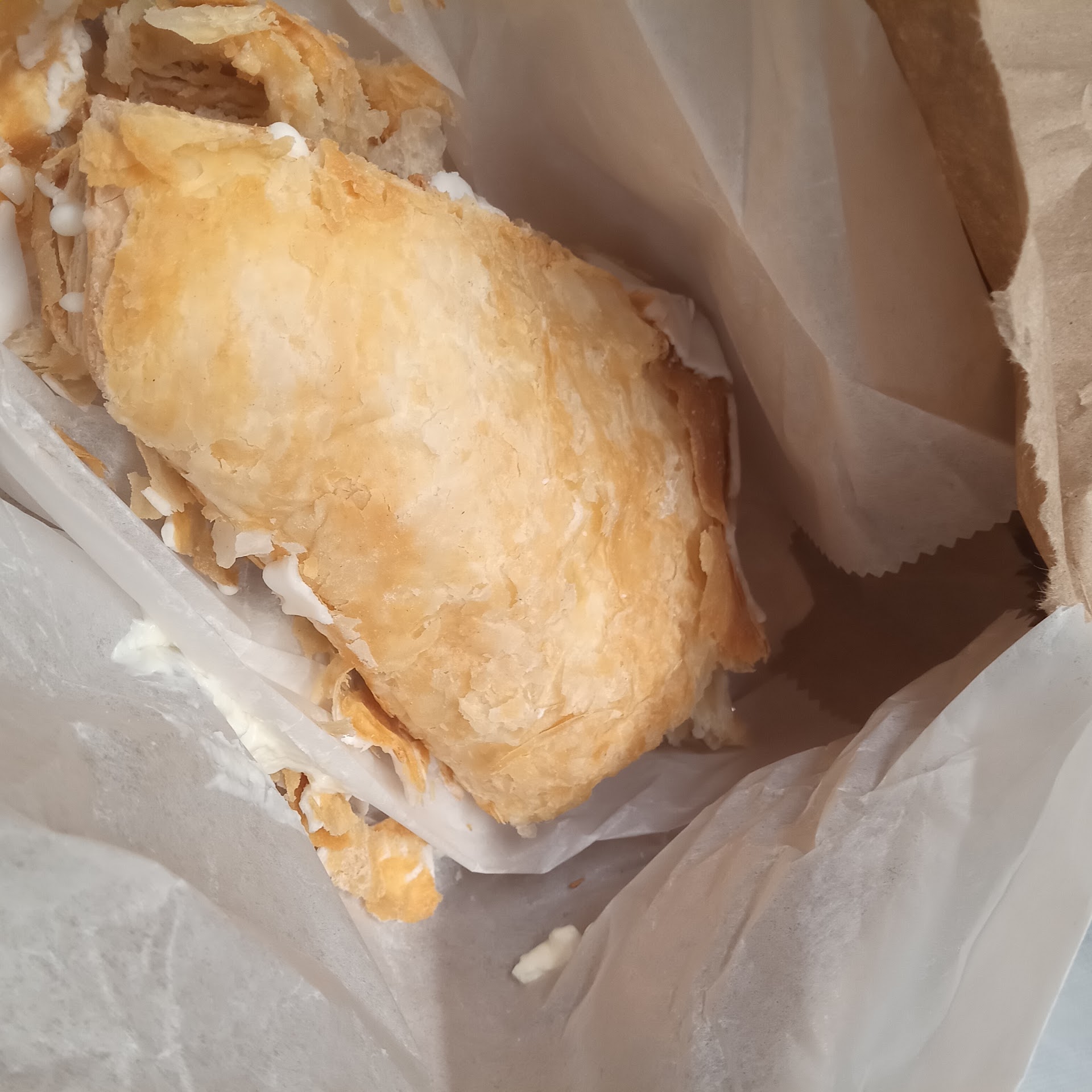 Read moreWalking through the area to get to the Dumbo - Manhattan Bridge area and decided to get a quick bite since I was starving. Initially thought to get a bagel, but I always feel you can’t go wrong with a ham and cheese croissant sandwich. Well, I was wrong. I ordered a ham and cheese croissant sandwich, a brownie and a coffee with cream and sugar. When we got to the popular street to take pictures, I pulled out my sandwich, took a bite and to my surprise and disappointment, it was cold. The man did not heat up my sandwich! Why? Doesn’t everyone eat a ham and cheese croissant sandwich heated up?! The cheese was completely intact - not melted, not one centimeter of it. It was frustrating and disappointing. The coffee and brownie were very good; but the sandwich was a...