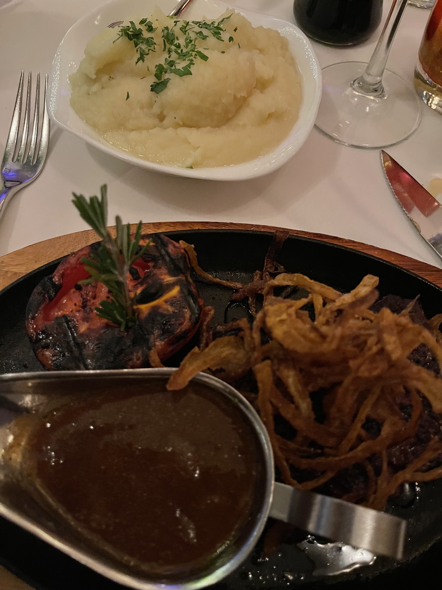 Read moreNot Recommended!! Let's start by saying that the prices are terribly expensive and the food does not justify it. There are so many options for excellent restaurants at a higher level and more reasonable prices (also kosher). And that's a good enough reason not to go into the restaurant. Second, the service was Extremely terrible- Disrespectful and rude. On the Internet it is pointed that the restaurant is open until 11pm. We called at 10 am to ask if we could arrive and were told to arrive at 10:30. We did arrive that time and Since the restaurant was already empty, we asked if it's ok for sure that we stay. (if not so we simply go to another restaurant). We were told that everything is fine and we sat down. The waiter was impatient . As soon as the dishes were served, the music was switched off and replaced by a tv news show (not really a pleasant atmosphere!). We ate really fast (About 15 minutes) during which the waiter walk back and forth close to the table and yawn loudly. Even before we finished our food, we were given the bill. This is not a service experience worth giving for a steak that costs $ 58 !!! We left the restaurant in shock at 11 (which is the time it says on the Internet that the restaurant is supposed to closed). It was better to tell us that they not accep more customers for today. The personal experience was disappointing but even if the service was good the food was not worth the money and there are other excellent kosher...