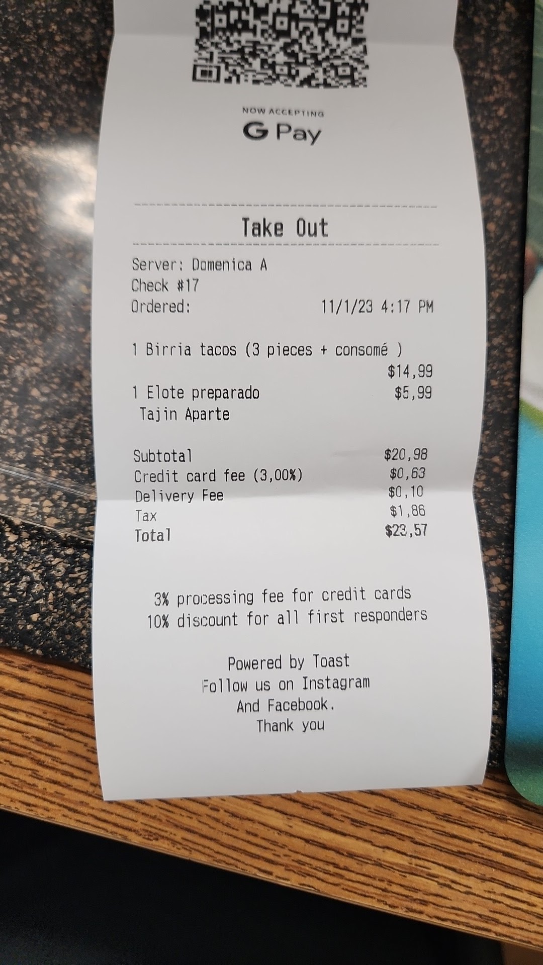 Read moreI heard good things about this place but my order was disgusting. Just oil and grease. The Birria tasted like oil, nothing else. Easily the worst I have ever had. I'm expecting to be sick later on. I haven't been this put off by a meal in a long time.