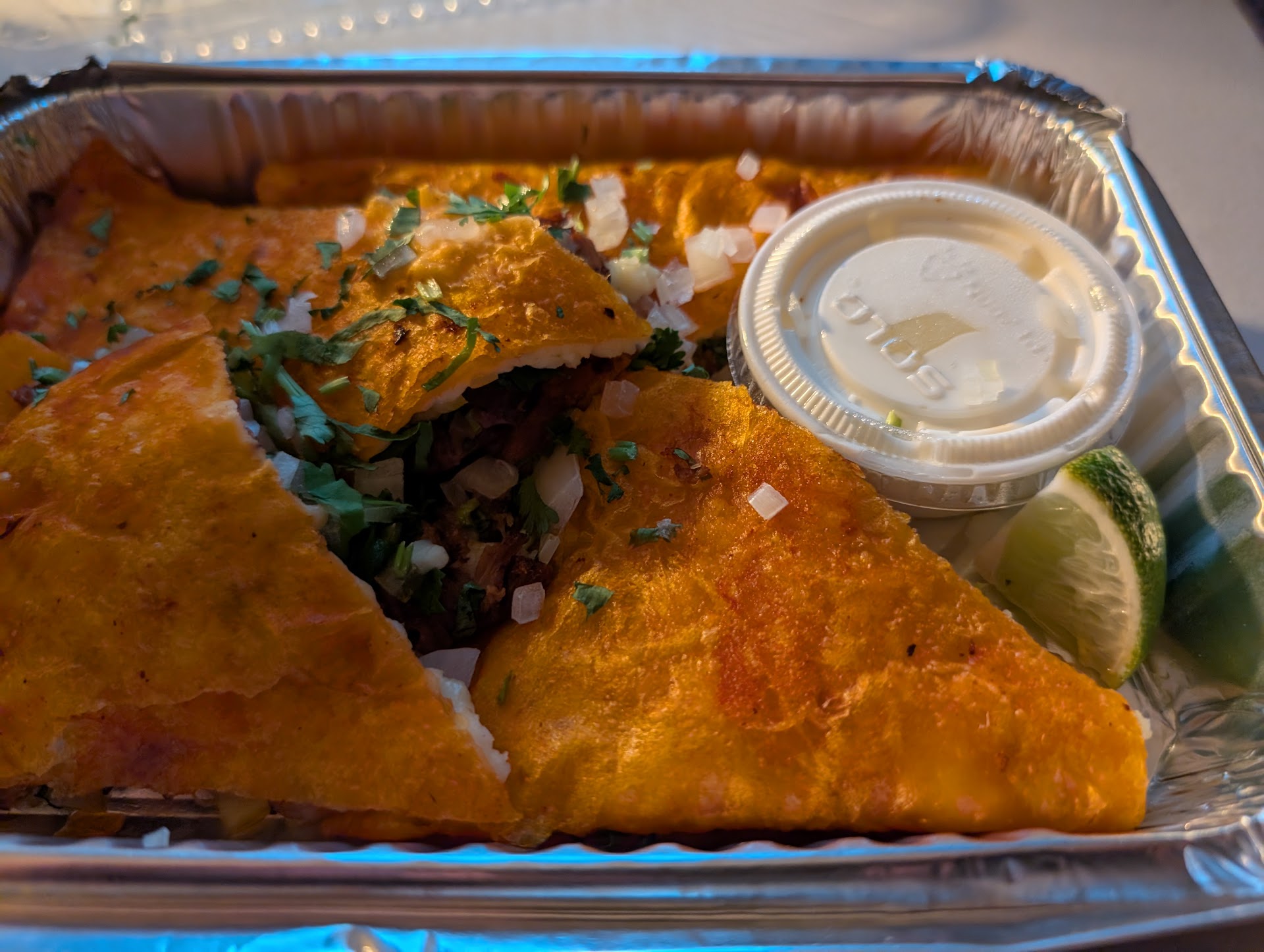 Read moreThis place may look unassuming on the outside but they make some good food. Both the steak and the birria quesadillas were delicious and they come with sour cream which you don't actually see at too many places without an upcharge nowadays. The tres leches was definitely something that they bought from a store or something but it ended up being really good tres leches so I can't complain. I'd probably get food at this place a lot more often if I...