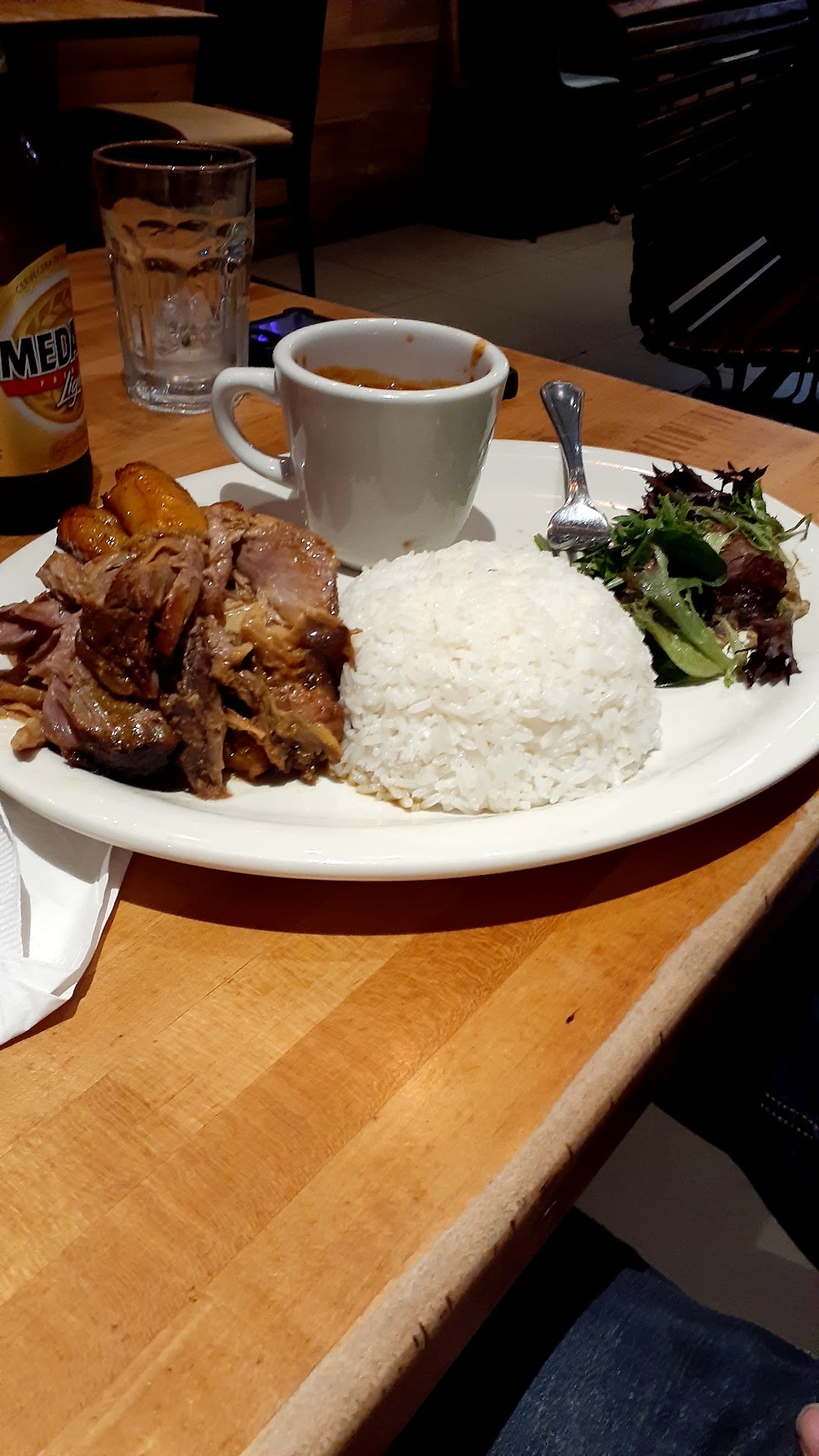 Read moreThis was a bad experience. We had a reservation for 6:00 pm. The reservation service said you can't be late more than 6:10 pm or I will get charged, so my party of 6 came on time, but we had to wait at least 15 mins before we got seated. The music was good. We had a friend prepaid some appetizers and drinks for 2 people's birthdays, but we were missing some appetizers. The sangrias was not bad. I have to say that was the one good thing for me. The worst thing to ever happened at a restaurant was that one of my guest did not get his food and my husband who was the guest of honor did not get his dish until very late as well. They mix up people's side. They gave my husband a side to another person and they gave another person's side to my husband, which was so messed up. Also, one of my guest wanted to take her leftovers, and the bus boy (who didn't speak English misunderstood) threw her food away. At the end of the meal, we complained to the waiter (whom was the only waiter for the whole restaurant and an inexperienced waiter too) but he couldn't do anything about it. I finally went outside to speak to the boss. He was outside washing something (I heard that the President of PR was supposed to come to visit the next day) so he was outside doing stuffs that wasn't meeting the needs of the customers. He should be helping to meet the needs of the customers. I saw several people in 2 tables leave because the service was too long or the food took too long too. I had the pernil which was dry, but the sliced steak was decent according to 2 of my guests. Ruined my husband and his cousin's birthday dinner!!! Never again!! One of the most horrible restaurant experience ever!! Don't go during dinner time when it's busy. When we were there, there wasn't a lot of people so they shouldn't have our orders mess up and miss someone's order. I see some reviews that brunch is okay. I bought the Pulsed vouchers too, but I couldn't use them on Friday which was my husband's birthday. I may have to go on a weekend to use the voucher and give it one...