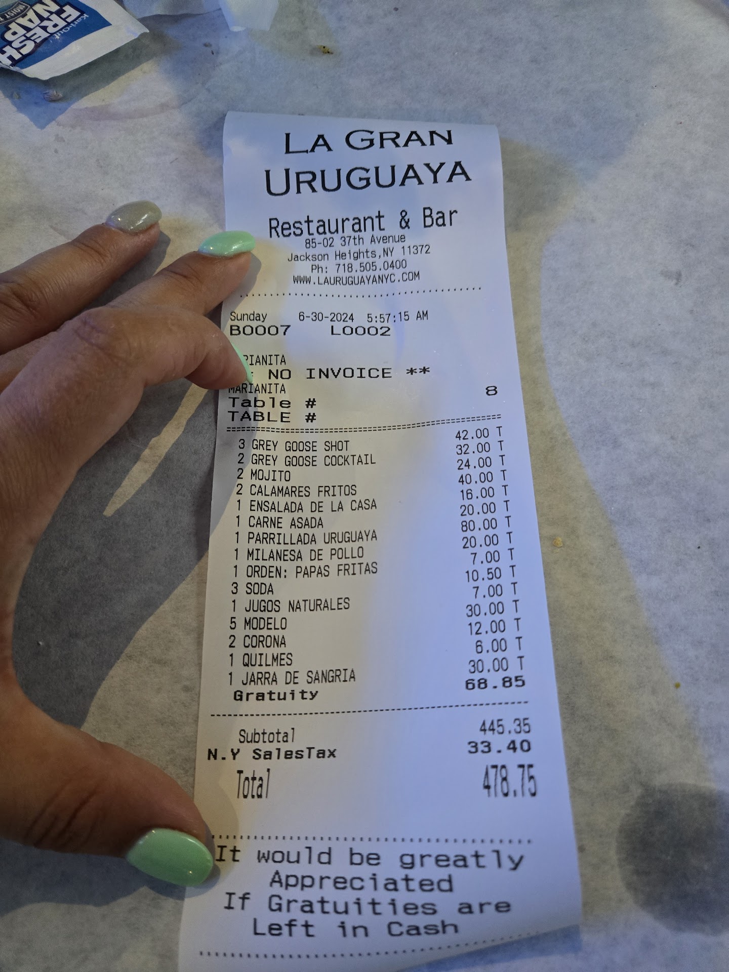 As a foodie, I took the time to come all the way from my condo in Hudson Yards to Queens to get my Uruguayan parilla and to support local minority businesses but not sure if I’ll return now, the customer service is just not there...only when they want 5 star reviews as it seems. And this my folks is how minority businesses go down, they simply don’t care about non Latino customers eating there because most of the people they serve to are those that perpetually say ‘NO ENGLISH’ and shove "Espanol" onto your faces, and refuse to assimilate into U.S. society. Food is still good but customer service, whether you dine in or takeout is a disaster it seems and unwilling to change and only 'MATTERS" when it's about wanting 5...