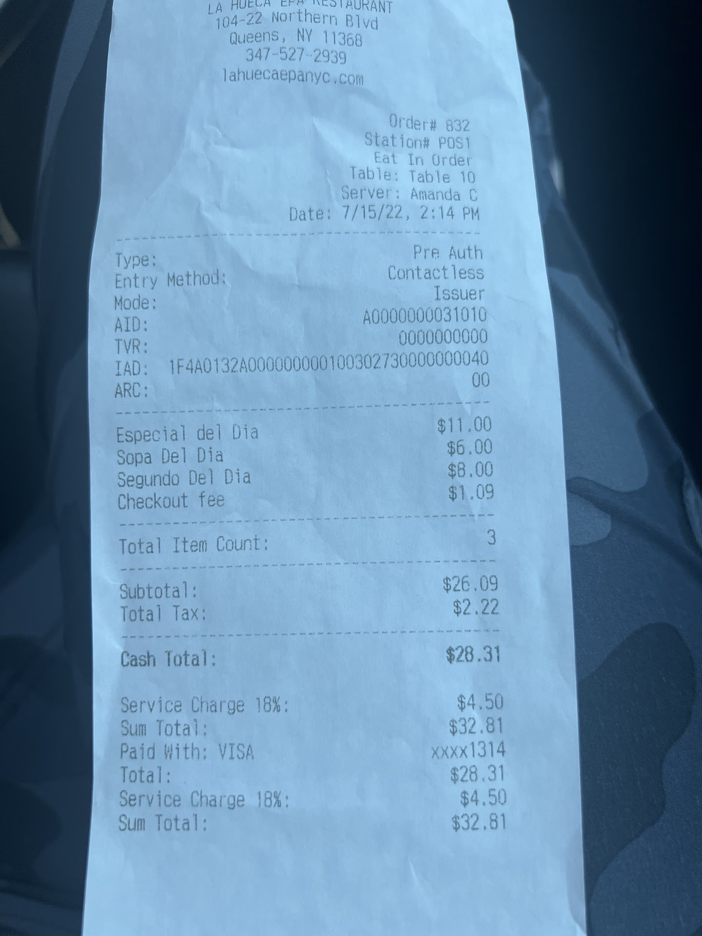 When I asked the check bill, I noticed a mandatory 18 % service charge I didn't understood, beside tax and tips.
