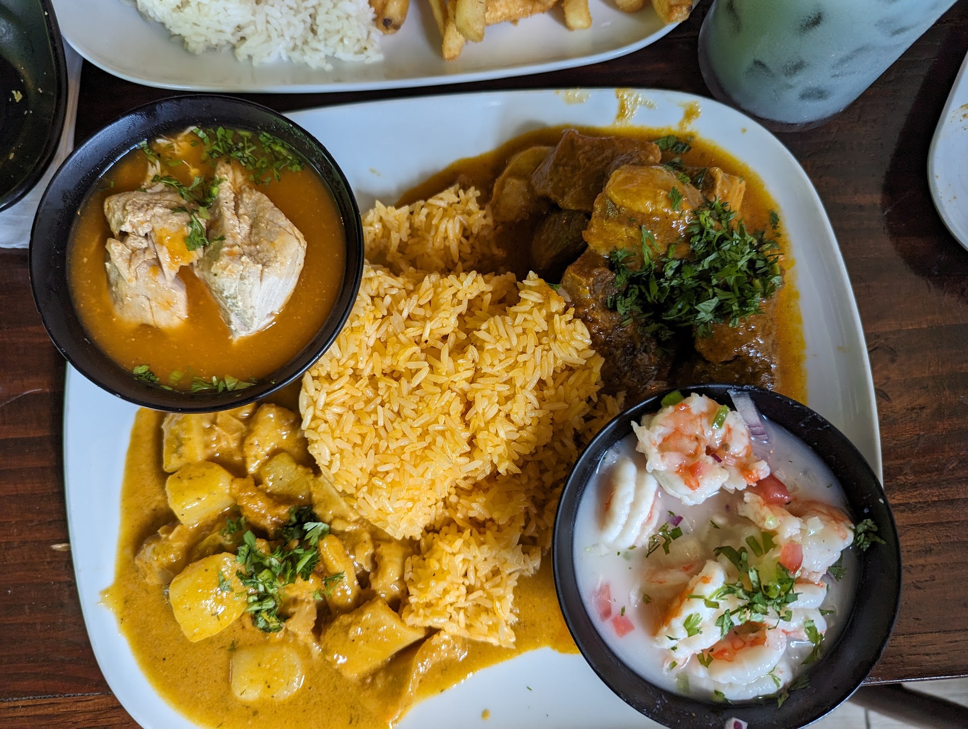 Read moreBe aware, they charge a 20% service fee. Other than that, service was ok. The food great and some lacked Ecuadorian flavors. The bandera it's a plate that has guata, seco de chivo, encebollado and shrimp something, not shrimp ceviche. The guata, chivo and encebollado delicious. The encebollado had a faint fishy flavor. Like the fish was old when they cooked it. But it was still good. The shrimp was bad. It had no flavor. It was like shrimp in a cup of water. The corviche was above ok, the empanadas de plátano ok. It was plenty of food. I did enjoy the meal overall. I didn't tip because they already had it added to the bill. Bring cash if you believe they don't deserve 20%. Although they shouldn't include this without posting or letting me know before hand. But it isn't the first restaurant I have had this experience with tip added automatically. Some even charge you q CC transaction fee . Definitely recommend the guata, chivo and...