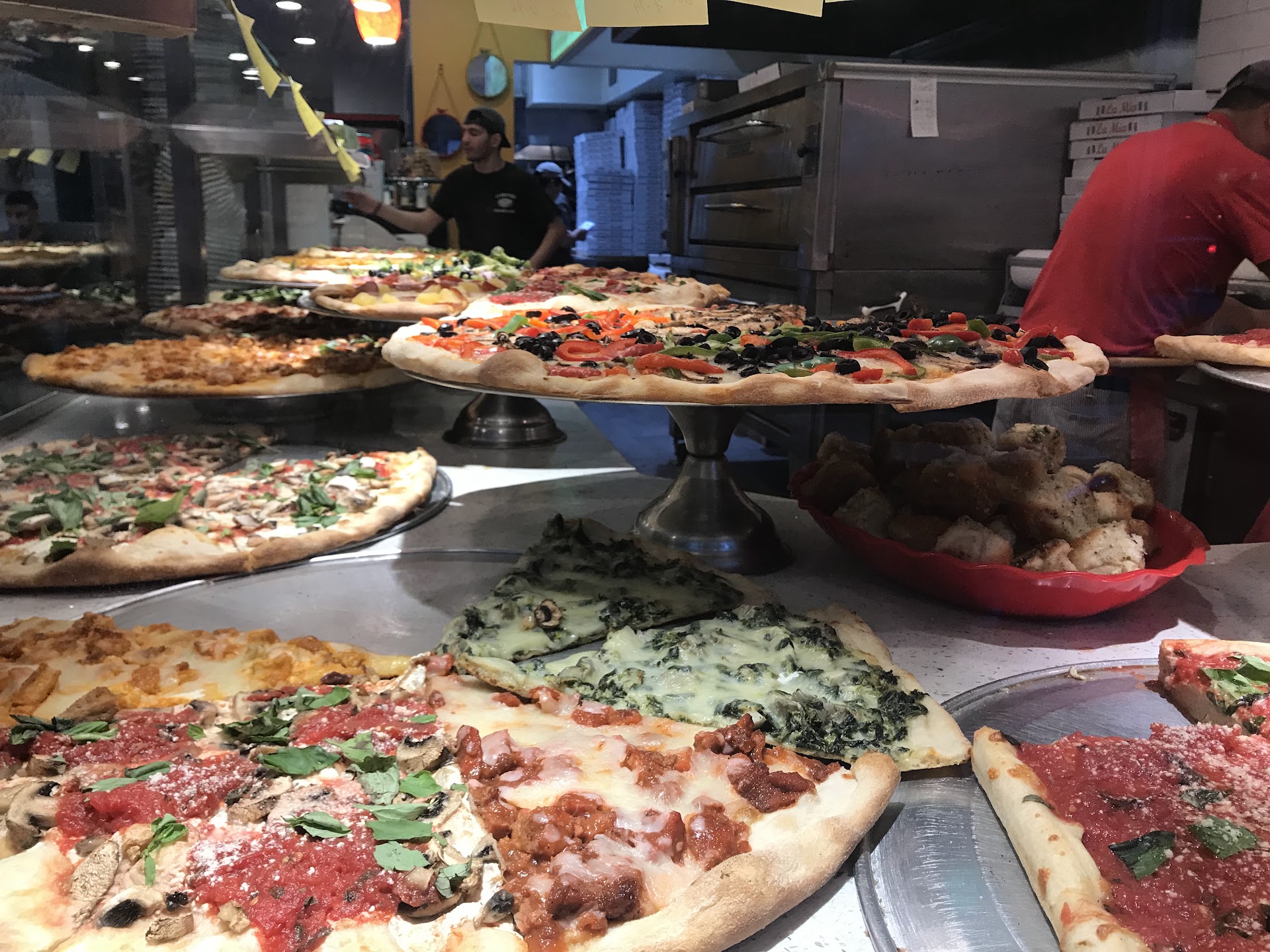 Read moreWe tried La Mia Pizza because it’s close by home and I ran out of food to cook. Okay, another pizzeria in The Village, what a surprise... But really, these pizza chefs are on to something. The crust feels handmade. It has an uneven look, and it’s crispy-chewy (yes it’s possible) with just enough oven burn on the bottom. The toppings! The mushroom slice was completely covered in thick slices of mushroom lined up like good little soldiers. Garlicky, just salty enough, spicy, juicy fresh mushrooms, and no oil dripping down the sleeves. The first bite resulted in my mouth involuntarily making a loud Mmmmmm! which frightened the dog out of his post walkies coma. Next was the very veggie slice, with a standard selection of black olives, onion, tomatoes, and broccoli. Again, the slice was carpeted with the delicately diced, and very fresh, veggie selections. Still curious, and hungry, we split the third slice, a mozzarella-ricotta, tomato assemblage. The cheese was thinly applied evenly across the slice and the tomato sauce looked like it was painted on in broad splotches. It sounds chintzy, but the mix was elegant. Gotta repeat: no oil dripping down your hand. Spiced perfectly, this slice basically was folded, aimed, and fired full speed right into my mouth. Oh, don’t worry, I didn’t abuse the dog- he got 3...