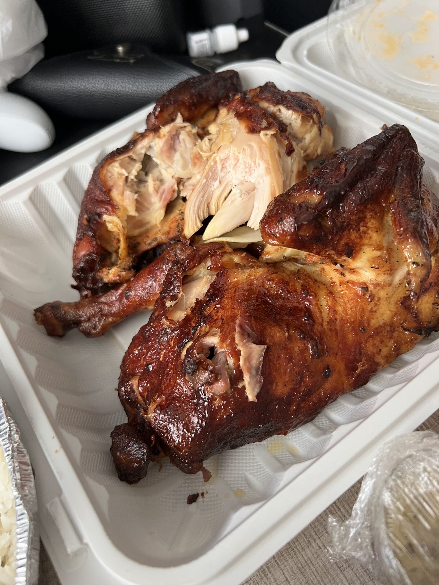 Read moreBeen wanting to try this place for a while now and was hoping to be a returning customer. Safe to say, I wonât be returning. I had high hopes for this local rotisserie chicken restaurant whose roast looks so juicy and tender through the window. I was so disappointed to receive a very DRY whole chicken. Even the dark meat was dry. I ordered the family combo #1 which comes with a whole chicken, large rice, medium beans(pint size container), small salad, 2 cans of soda for $25, the side of maduros ($6). The beans were bland and had more sauce than beans itself. No complaints about the rice. Maduros were good but nothing to rave about. If you do decide to dine here, they are a cash only...