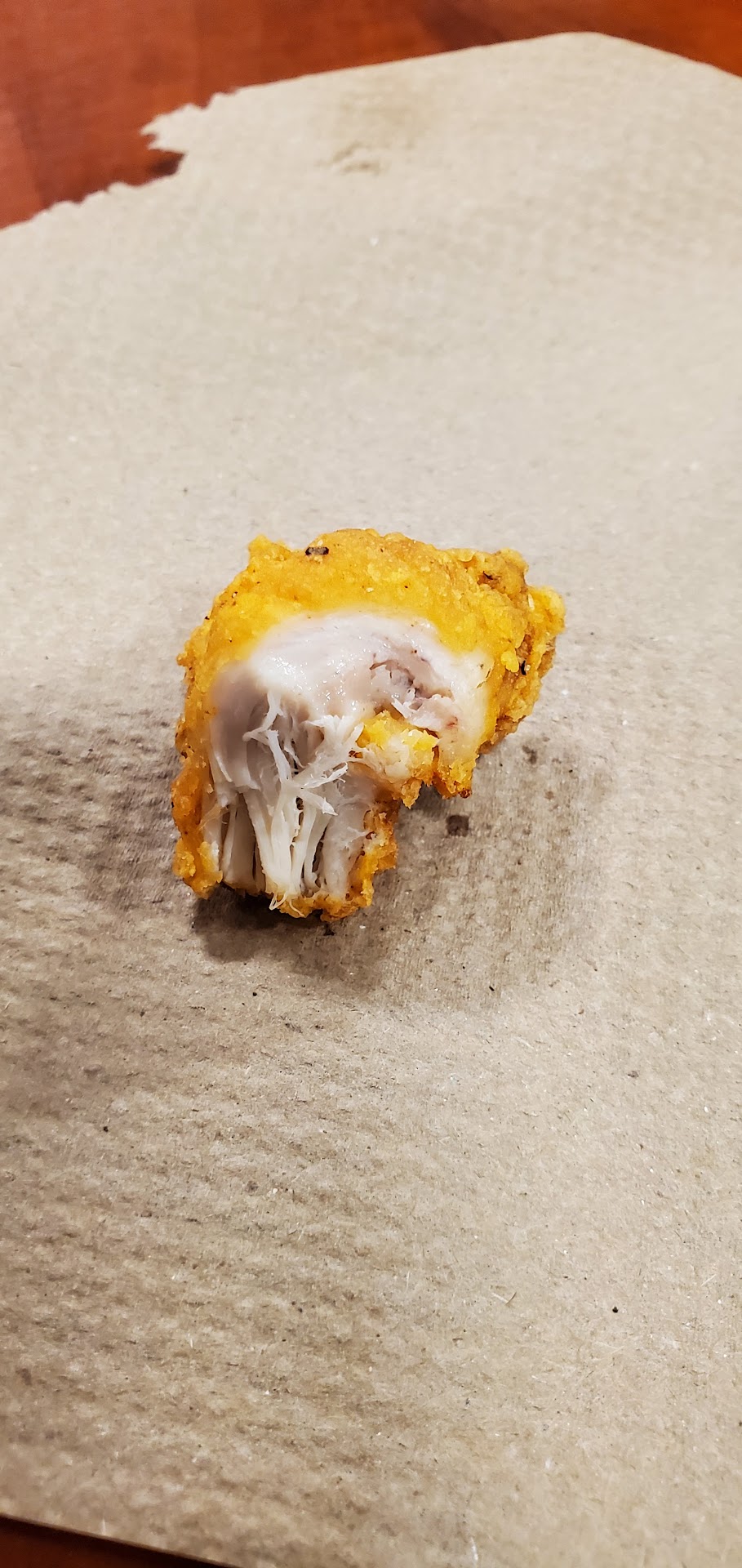 on the skin but not the meat. And the chicken is dry. A sauce or ketchup is need for the dryness of the meat. And ice cold...