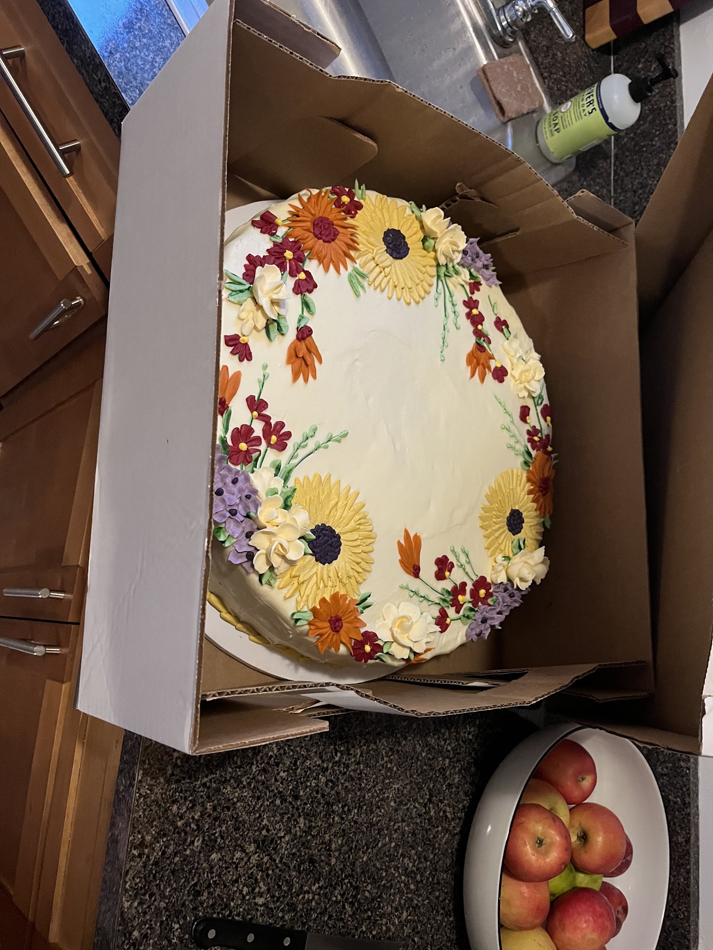 "I just had a strange interaction with one of your employees. I had ordered and paid for two cakes ($200 in total) and came in to pick them up. One was a 10” cake, the other a 12” cake (and, as you know, they're larger and heavier than those dimensions would suggest). When she brought them out, I explained that I would be carrying them out and asked for some string to tie them together - not to carry them with but just to make sure that the smaller box didn’t slide off the larger one. She refused to tie them together - 'I wouldn’t even know how to do that' - or give me any string (there was a string dispenser visible behind her). I then asked for tape and she begrudgingly gave me a roll of scotch tape and walked away, which allowed me to tape them together. I’m looking forward to eating the cakes, but getting such unhelpful service isn’t leaving the best taste. Any thoughts?" Apparently she didn't have any thoughts because that was two days ago and I haven't heard back LOL. And, oh yeah, the writing on the otherwise great-looking cake looked like it was written by a six year old.