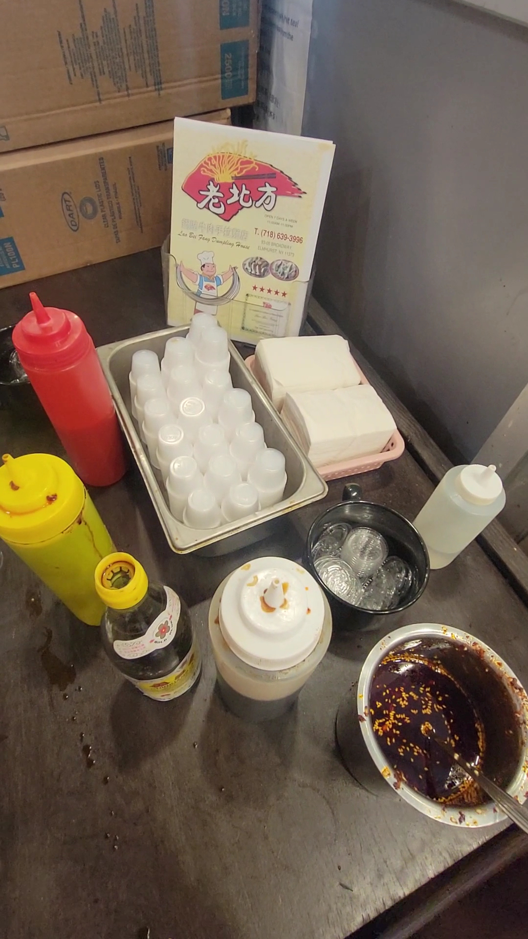 Read more9/27/2024: (Update #2) My favorite spot to get boiled dumplings in Elmhurst! I’m a bit biased - I grew up in this neighborhood, so Lao Bei Fang is very nostalgic to me. When you see the bright red awning, you know you’re at the right spot. The pork and leek boiled dumplings here are very hearty, meaty, and super juicy. They’re thicker-skinned dumplings which are definitely going to leave you full. Came here last week with my husband for a fast, casual experience with cafeteria-style seating and good dumplings. A box will fill you up quick in this no-frills restaurant. Don’t forget to load up on the chili oil, soy sauce, and hot sauce!