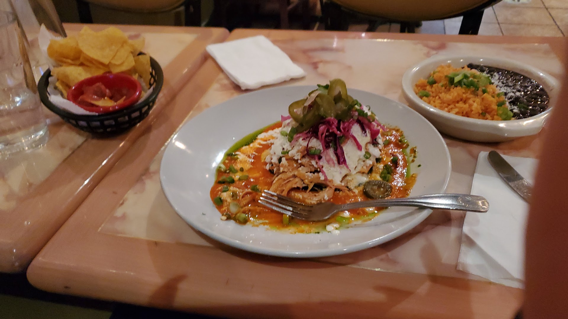 ย ย ย Read moreA nice little eatery with a cobbled together decor, wooden table here, metal one there, Formica tables. Suppose it is to give it a Mexican cantina look to the establishment. On a side note, they do not have a liquor license as of yet, so no cerveza with your food, just soda and juice. Now having said this, they make some very excellent Mexican food. My wife had a selection of tacos, which were nice and fresh. All presented very clean, no globs of sour cream or refried beans or loads of cheese, just nice clean flavors. Personally, I had the Churrasco which was grilled to my requested medium rare. Well seasoned and served with rice and beans and some guacamole. I left nothing on my plate, not a single bean. Also, order the guac as an appetizer which was served with freshly fried tortilla chips and this delicious smoky salsa. All in all, I hope they stay in business for many many years because I...