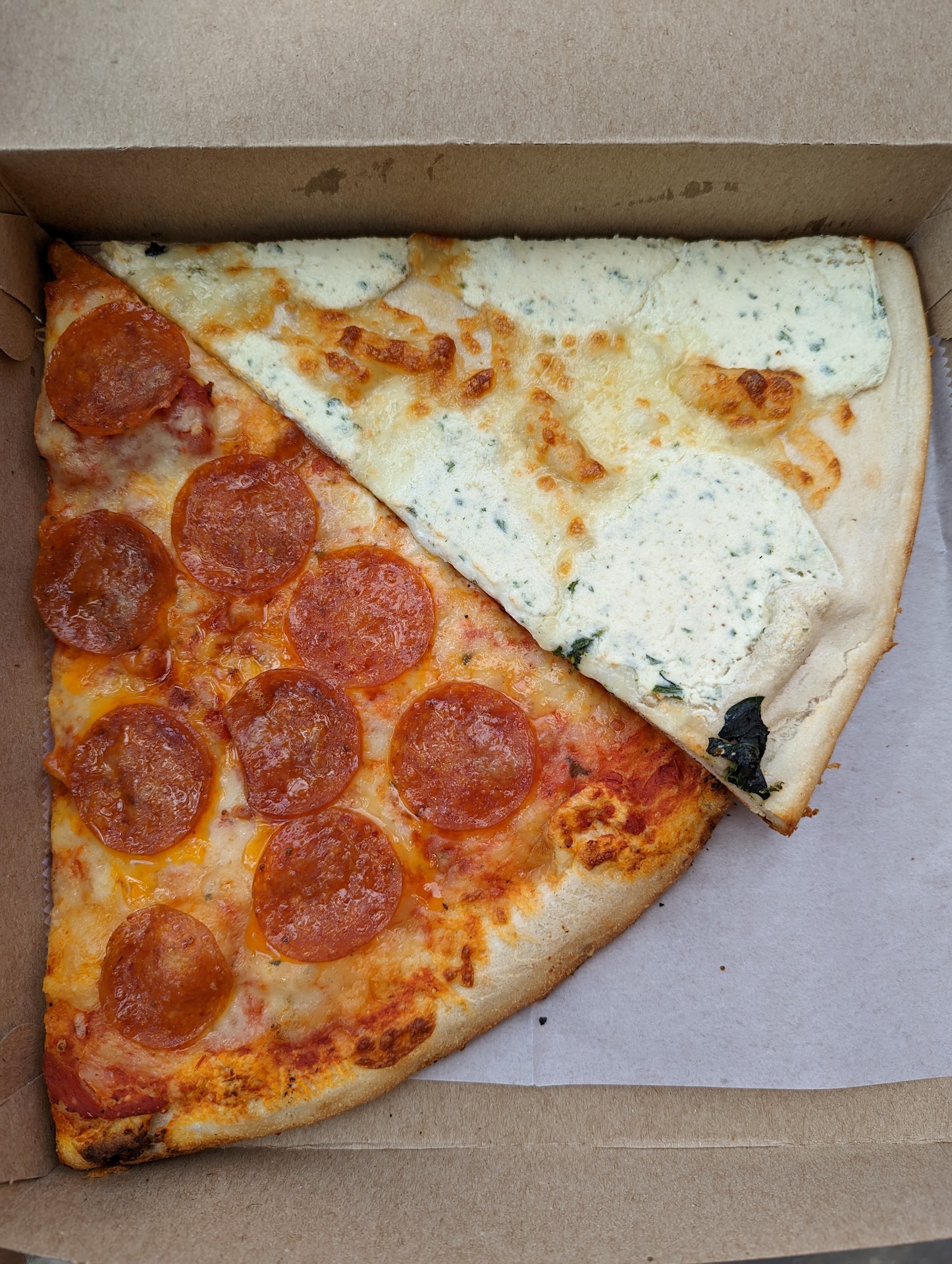 Read moreForgot my side of sauce. Didn't leave the slices in the oven long enough to melt cheese or even have it above room temperature. Chicken pesto artichoke slice was so dry I could barely eat it.