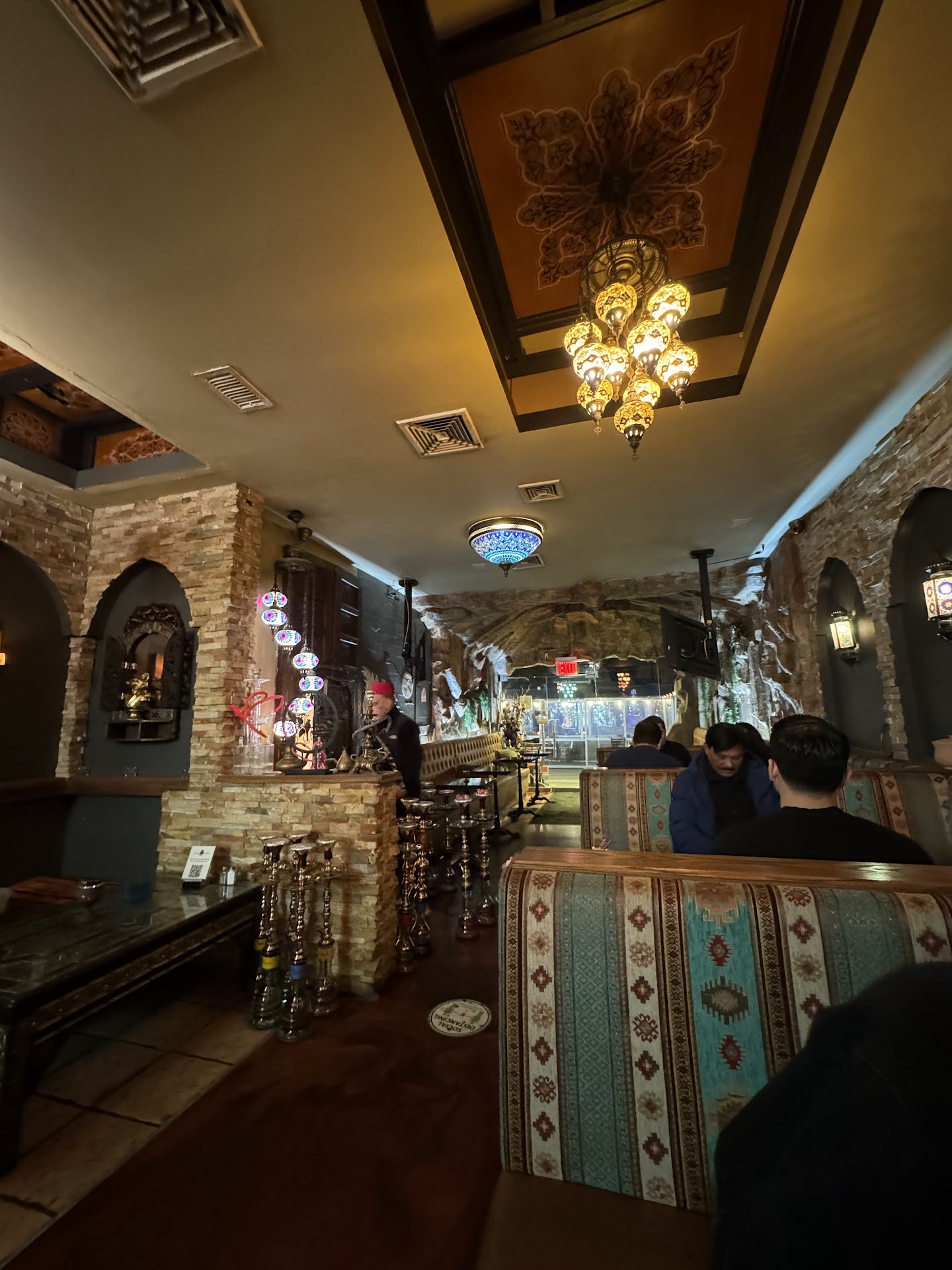 While most places in Steinway typically either have a nightclub setting or a very cheap recreation room sort of asthetic, you automatically feel at home with the way one feels welcome when one walks in. You can sit down - watch TV, gather and just relax listening to either classic Arabic tunes or whats going on in the media.
