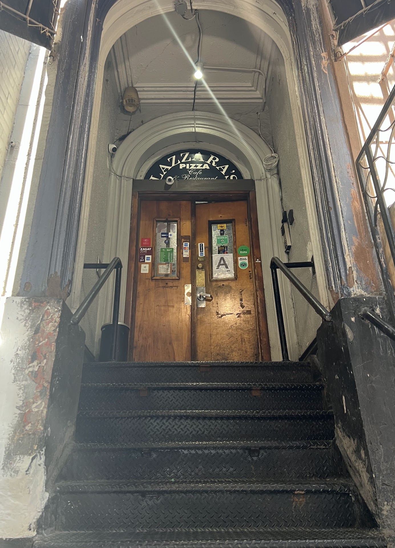 Head up an unassuming stairwell in the Garment District to find Lazzaras. On the far side of a tiled entry, open the door and find yourself transported back to the New York City of 40 years ago in this charming pizza place. Feast your eyes on the crystal light fixtures, exposed brick and maroon plaster walls that echo the color of marinara sauce, and little tables waiting for a lucky few to dine with their friendly and helpful staff.