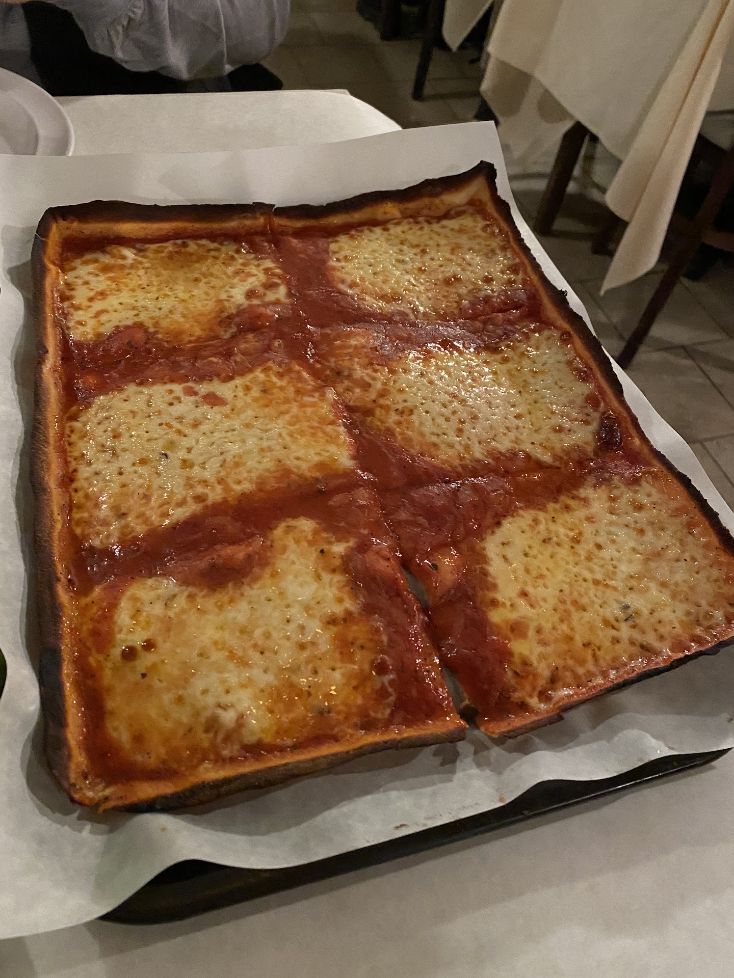 We did feel like the pizza was expensive for what we got. It wasnât very large, but too pricey to buy a second rectangular pie, and I donât know that any of us four were completely full after we ate our garlic knots and pizza too.