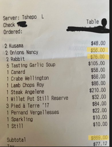 Then: the check. $440, with a mandatory 20% gratuity.