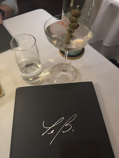 Beyond the fabulous food, the service was warm and welcoming. The maître’d was extremely welcoming when we arrived, escorted us to our table, was politely attentive when my friend excused herself from the table so he could help with her chair and refold her napkin, and conversed with us at the end of our meal. The two servers who helped us were delightful, attentive, and provided wonderful recommendations and guidance throughout the evening. Chef Mar circulated throughout the dining room and was approachable and conversational. And the bartender crafted a lovely gin martini with a dramatic presentation of six olives to garnish the beautiful drink.