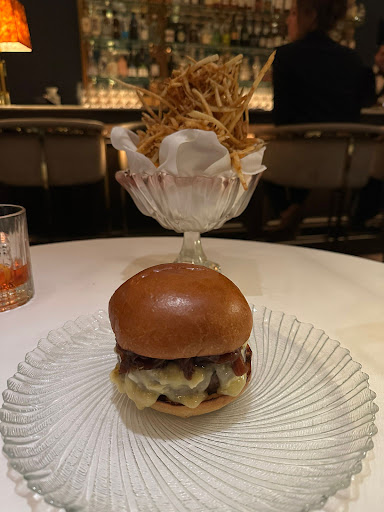 I recently dined at Le B for the first time, and I cannot wait to return and to host a party there some day. The burger has a lot of buzz, and it did not disappoint. It was hands down the best burger I’ve had maybe in my life — and that is not hyperbole. The dry-aged beef imparts a rich umami that you just don’t find in other hyped burgers around the city. It was cooked to medium-rare perfection and topped with a velvety dollop of d’affinois cheese — “cheese of the angels” as my best friend and I have called that cheese for years. The warm and pillowy brioche bun absorbs all of the beefy and cheesy goodness to curate the perfect bite. Chef Mar has also perfected the art of frites allumettes — or shoestring fries. They were served dramatically in a stunning crystal bowl, and they were perfectly crispy with a delightful chew and balanced seasoning. This burger and frites combo needs to be on every “best burger” list.