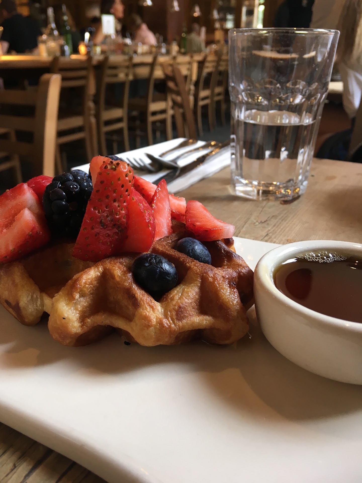 Met a friend here for lunch, at his suggestion. Sadly he and my husband planned the outing together and didn't do a good job of checking the menu for non-egg items. (I mean it's a bakery, egg, breakfast place - what were they thinking?) Totally not the restaurants fault, had I been including the plans I'd have nixxed the idea. Cute little cafe. The staff was nice enough, but not attentive at all. At all. Water glasses weren't refilled, not even once. I don't believe they ever came by to check on us after our food was delivered. I got the chicken cobb salad (sans egg) and it was fine. I can't remember what the others in the party got. But they were happy with their choices. It started to pour and it was evident that no one in the building was going anywhere anytime soon. I kind of expected the waitress to come back at that point and she didn't. Someone came by to collect our plates and we asked for more beverage. He said that the waitress would be right over, which she wasn't. Someone else brought one coffee to the table, no water and no inquiry as to if the other two of us wanted anything. We had to flag the waitress down to ask for more waters and more coffee. She didn't stop by the table again. Didn't even do that slow-stroll for us to notice her 'in case' we needed something (we were talking a lot because we had years worth of catching up to do, but that's not why she never made it back). After the rain stopped, we again had to flag her down for the bill.