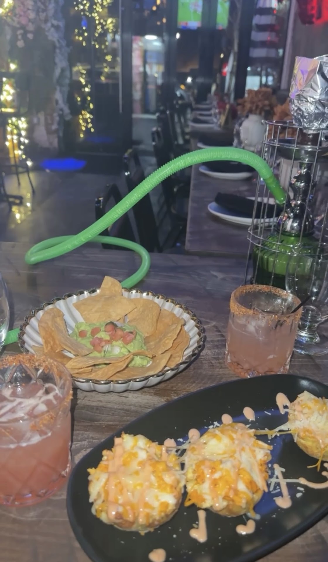 Surprisingly the restaurant was super small and empty. I went to go use the bathroom and noticed there was a really pretty flower wall with a mirror. So being it was my birthday weekend & I was dressed up, I wanted to take pictures. It was like 2 men (who I’m assuming worked there because they were going to the kitchen/bar area) who stood there watching me take pics looking at me AND my sister funny ….. Making it very uncomfortable. We used the bathroom and went back to the table cool.