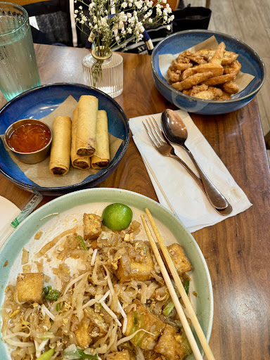 The food definitely blew me away. It was surprisingly good. We had the crispy spring rolls, classic fried rice(Chicken), pad Thai (chicken), and a mango avocado salad. The fried rice was amazing. I've always prefer Thai fried rice compared to other Asian fried rices. It didn't taste super greasy and it had the right amount of eggs and chicken and vegetables. The salad was perfectly riped. A great combo of mango and avocado with onions/cashews and an Asian sauce. Very fresh and delicious. The crispy spring rolls came in a set of 4. They tasted great are also a nice size, not too small. It was paired with a sweet chili sauce for dipping.The pad Thai was delicious 🤤 not too dry and just the right amount of oil. The noodles were cooked perfectly. The portion was a great size. I ended up taking the fried rice and pad Thai in a to go container. She was nice enough to box up the food for us.