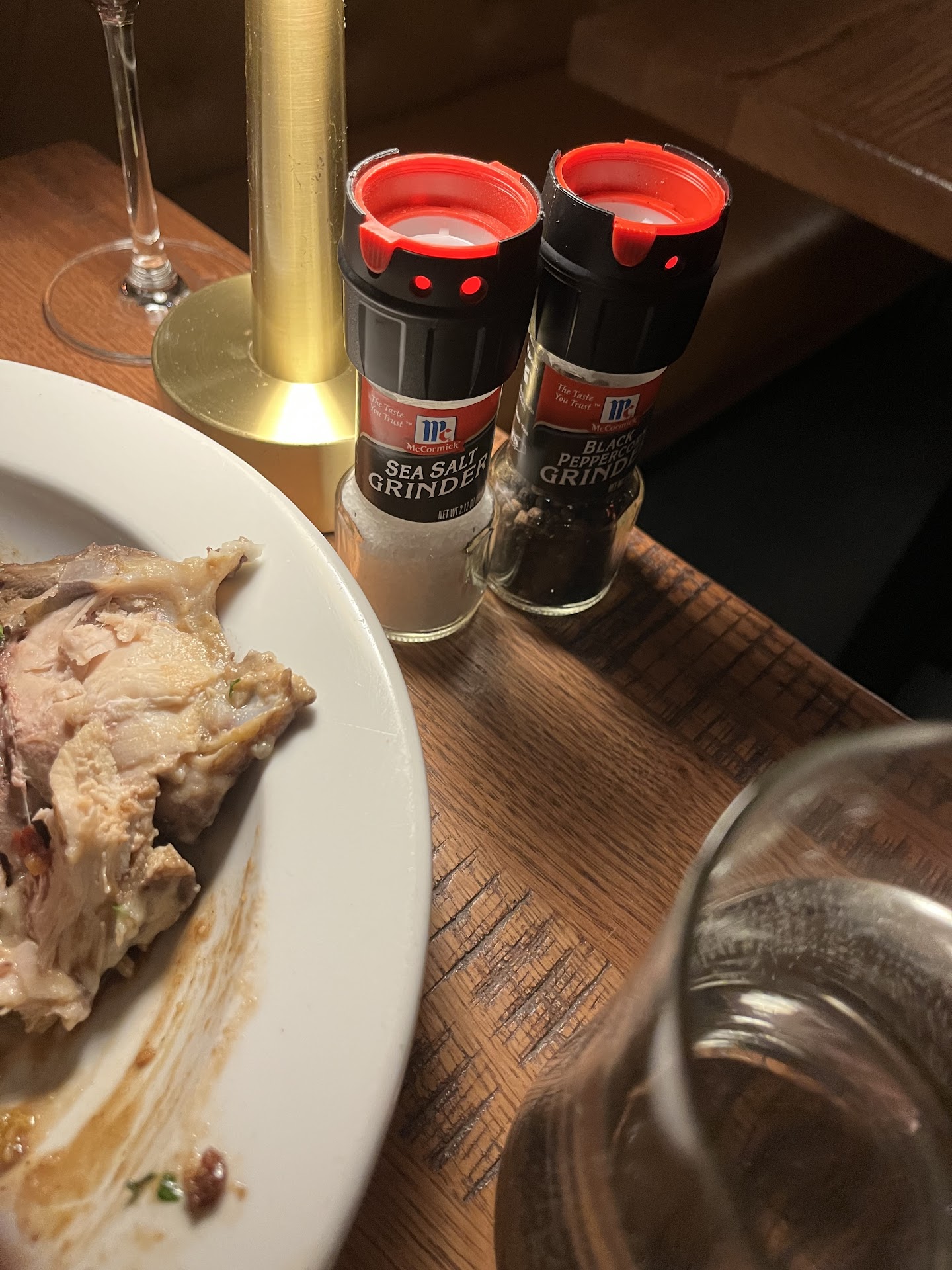 Lastly, at one point in the dinner the server had brought salt and pepper to the table. What was off-putting was that it was in the original McCormick brand salt and pepper shakers … which when dining at a restaurant is a little off-putting.