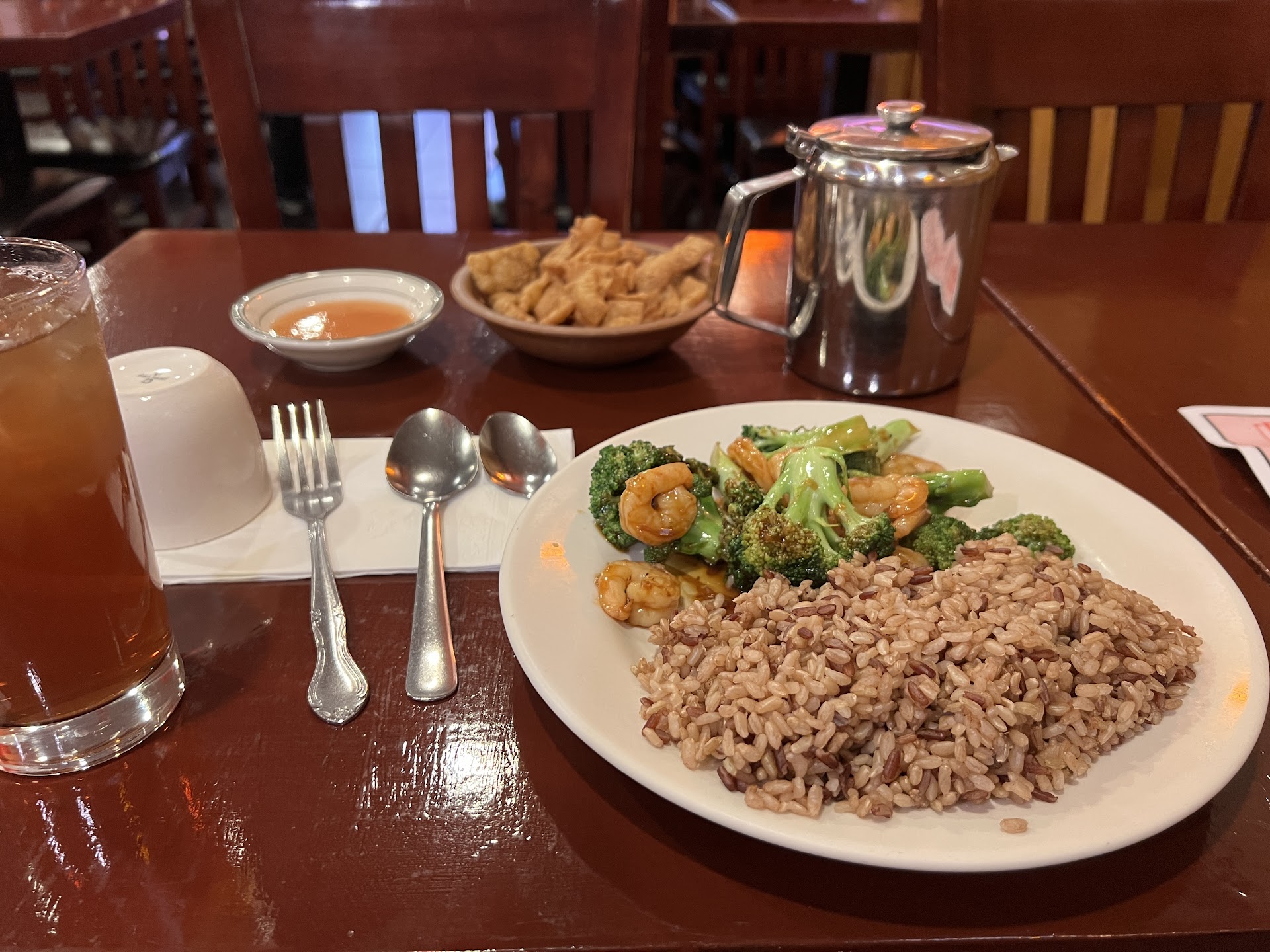 The offerings feel very generous, and therefore uniquely luxurious. Free tea, wonton strips with sauce, and a fortune cookie at the end. My lunch special even came with a choice of a soup or iced tea! Food is great and importantly, I actually felt full after eating.