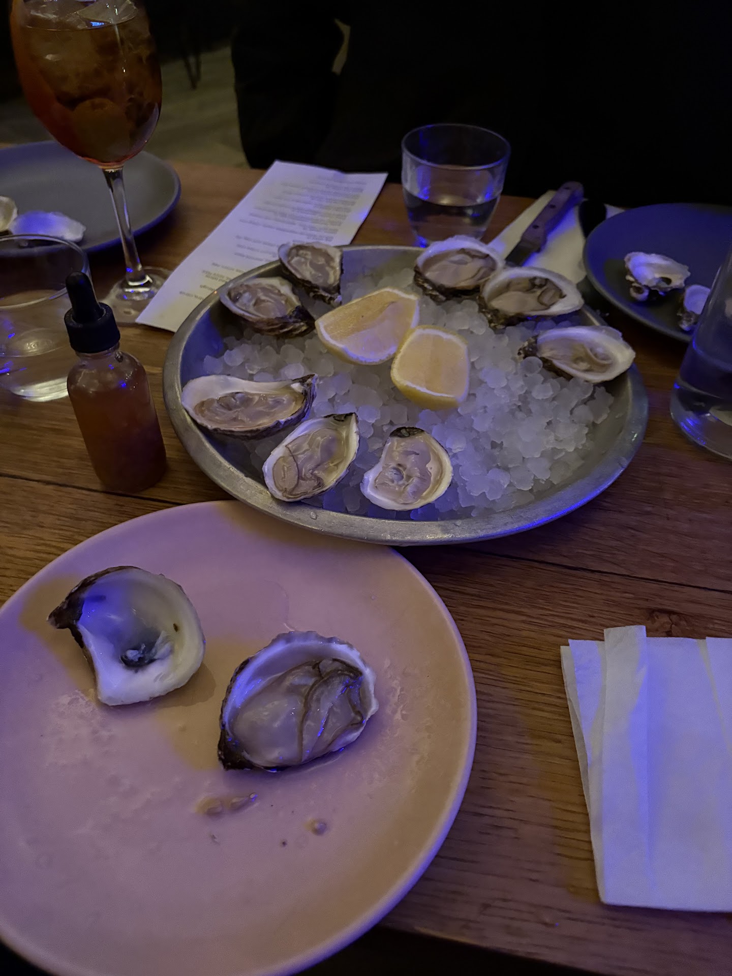We lucked out just minutes before happy hour ended and ordered a dozen $1 oysters (normally $3 each), and they were flawless—no grit, expertly shucked so the delicate meats were intact and easy to savor. Paired with fresh lemon and a clever mignonette served in a dropper, the oysters set a high bar.