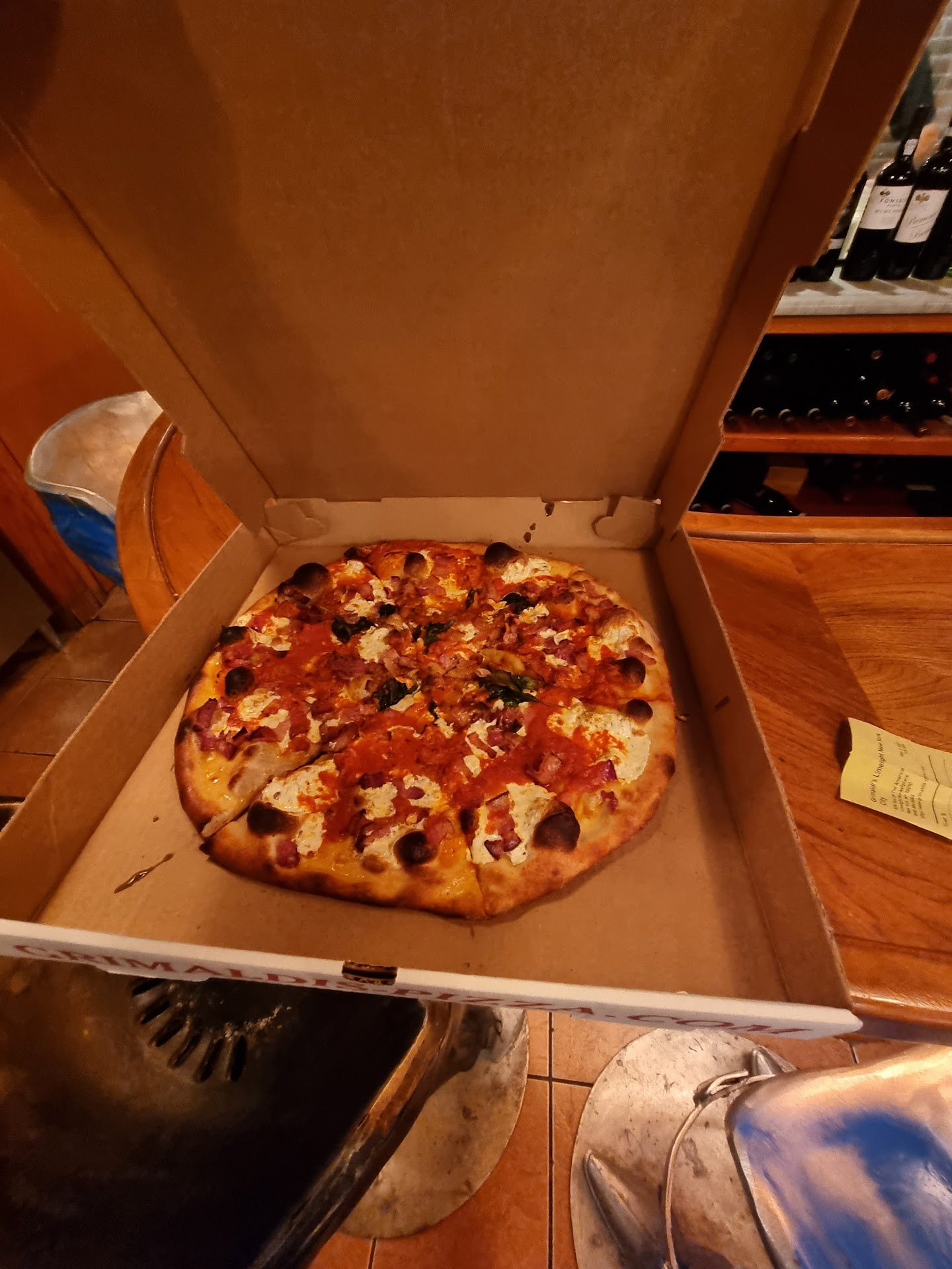 Went to Grimaldi's in Las Vegas and in DUMBO. Both places were great!! Although had to wait about 1/2 hr in dumbo. But worth it. First time at 6th Ave NYC location. Very tight seating arrangements. Have no privacy. People are sitting on top of each other. Then waited for a table, had one open at 10:00pm at night that holds 6 people. They rather us wait, then to give us a table that holds 6 people. Meanwhile they were closing in a half hour. Were 6 people going to come in? Did not want to make customer happy. The owner in there, if he was the owner, he seemed to be, was very very rude. Ugh, I was so close to walking out. But I was so hungry. Other wise I would have walked out. Just because he has the Grimaldi name, he needs to be nicer to his customers. Waiters were not very friendly. Everyone that worked in there looked exhausted. It was more like, give me your money, Ill give u a pizza! the owner was in the cash drawer every 5 mins counting his money! Please...The place is in the Lime Light church what used to be in a corner. Not very clean area. As we left, I saw holes in the place covered up with Steel wool. I wonder why? Yuck! I think you should plaster it up, and not show Steel wool anywhere. Isnt that a sign of rodents? Gross! If I had to rate my whole experience from a 1-10 being the best, I would give it a 3!! Never again will they see me. DUMBO is the place to be. NOT THIS ONE!! By the way, be prepared to have CASH on hand. NO credit cards are accepted! CASH ONLY! A inconvenience! Oh one last thing, how can you call this Authentic when Mexican's are making the pizza!! GET REAL!! Your place isnt all that, and Im sure you will lose customers after this review! And the only way you can say this is a great place, is if you are visiting NY and a Tourist and dont know any better. Go up the block to a regular pizzeria. It will cost you a $1.00 a slice, and youll have happier and friendly...