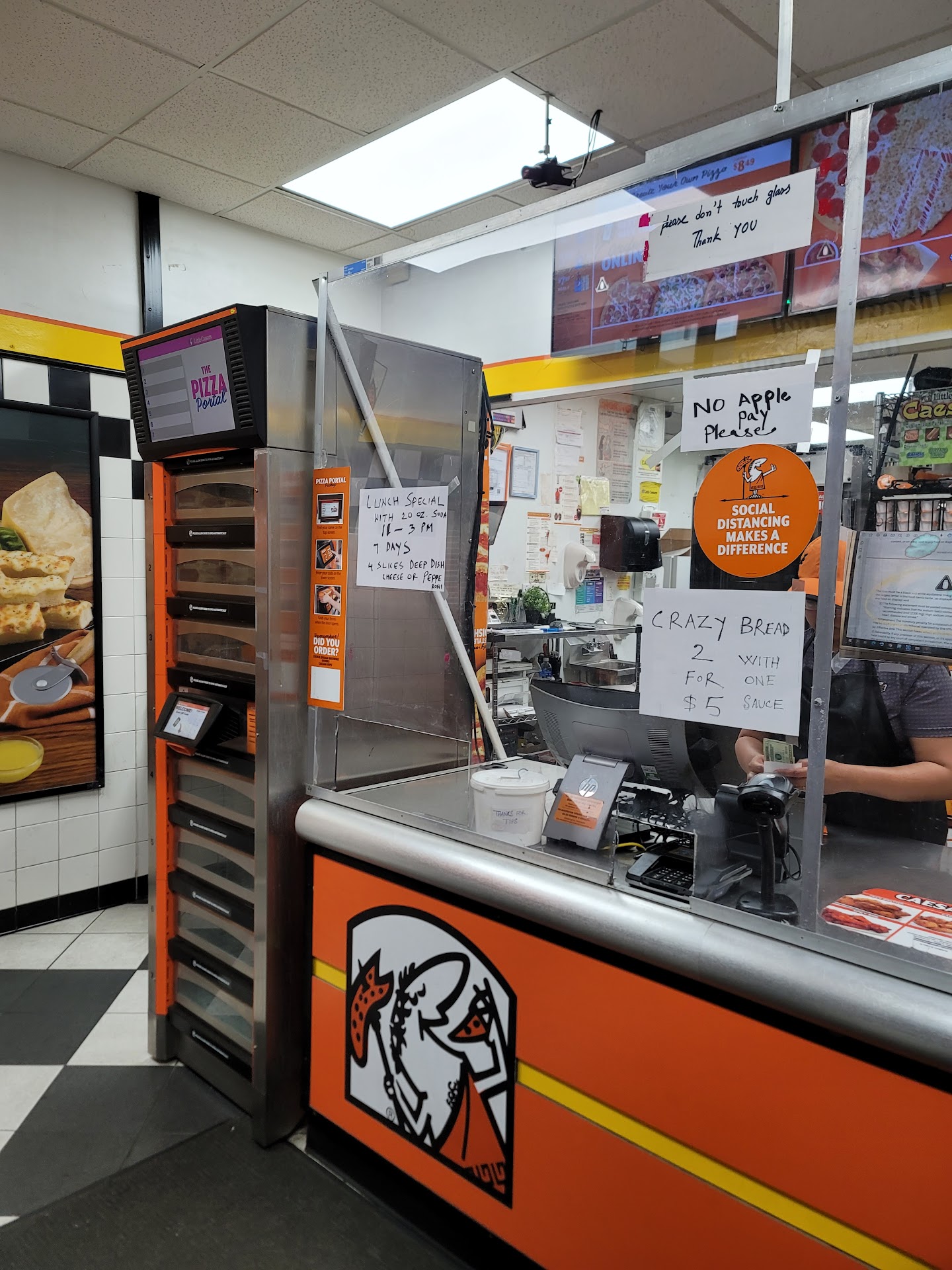 The location doesn't look like it's the cleanest and has many poorly handwritten signs that say things like "No Apple Pay please" and "Crazy Bread 2 for $5 with one sauce" which I find really strange. Little Caesars is a billion dollar, multinational company and yet this particular franchise is operating as if they want to spend as little money as possible on signs and advertising materials from Little Caesars.