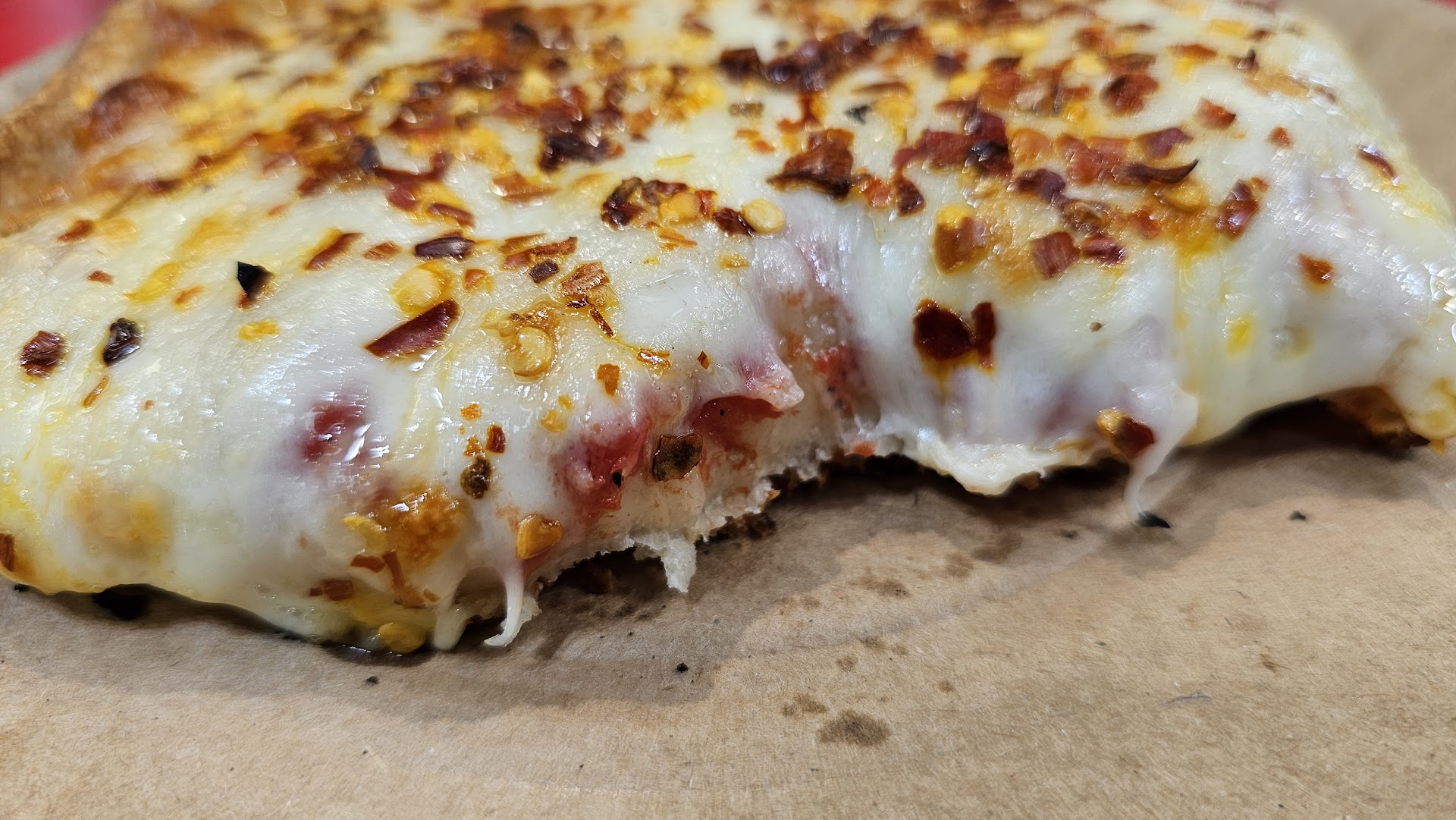They offer the standard thin NY pizzas as well as the thicker squares slices here - there's some good variety, I saw some with chicken and broccoli, hawaiian, meat lover's. I got a white pizza which had a standard cheese blend and then pockets of a soft creamy cheese on top - not sure exactly what it was but it was nice. Pizza was a little on the greasy side but mostly my complaint about that slice was that the lack of sauce did make it a little bland. But that was a personal choice I made by ordering the white so not really their fault.