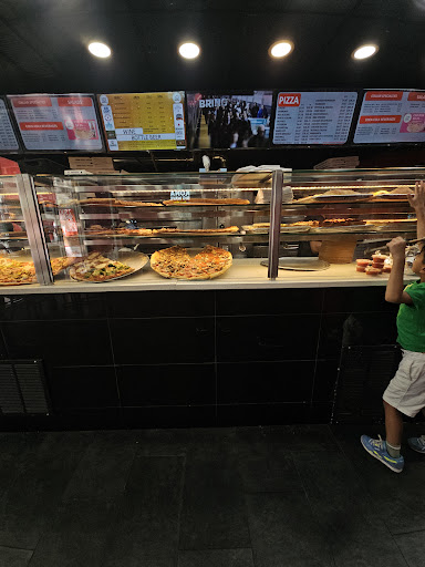 Small take out pizza place. You can sit inside, a bit tight or sit outside. Establishment is small but can be seen from the street or 2 blocks away because of the big pizza awning on the outside. They do lots of different pizzas. The toppings seem unless but they do have other specialties pizzas. Ham and pineapple, spinach, bacon and chicken, etc. All look good and are present trip you right in the front entrance. These are oven baked pizzas, they taste good, especially the crust. I don't know what they use but it makes it crunchy and if you are a person that eats pizza to the end, even the crust, you'll enjoy this. It's a little Italian pizza place. I think the world are Italian because I heard a bit of them talking and it sounds Italian. I can be wrong but the arguing and the annoyance between the worker seem to identify them as Italian. Either or pizza is good, garlic knots are even better. They are bigger than your average garlic knot. Expect to pay like $2.50 for them and $3.00 for a slice of pizza. Almost forgot slices are regular size and they have a combo of 2 slice with a 20 oz drink for...