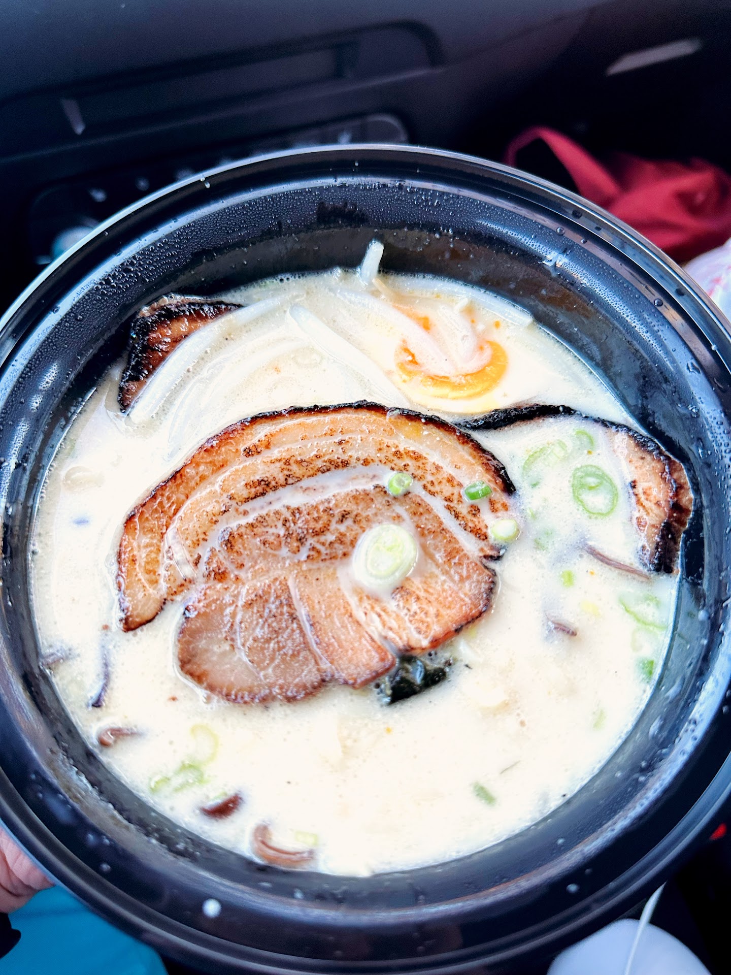 Braised Beef Ramen Bowl ($16): served with ramen noodles, bamboo shoots, fish cakes, fungus, seaweed, corn, onion crisps, half a ramen egg and your choice of broth (tonkotsu, shoyu, miso, curry broth or clear broth). With the staff’s recommendation, we went with the tonkotsu broth. My friend, who ordered this dish, really enjoyed the broth. He had some leftovers, and the staff was kind enough to provide extra broth for him to take home.