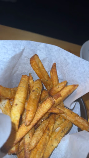 First time here we rated all of our food 10/10 My partner got the Wild salmon with a side of Asparagus and I got the Pear salad with Chicken and a side of Fries with truffle salt.
