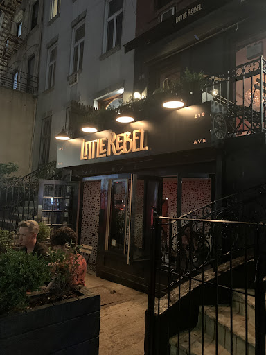 Little Rebel is a new bar in the East Village that is serving a variety of adult beverages and has a kitchen cooking up comfort foods from small bites to big mains. the upbeat bar has relaxed retro vibe to it that pays homage to “rebels” of the screen, music, and beyond. there are several tables arranged outside on the sidewalk patio, front window seating, and then a ton of seating that stretches from the bar to the back of the interior. it has that bar charm without trying to be cool or trendy.