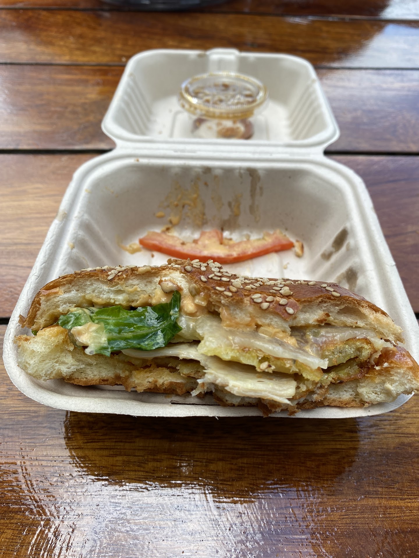 Read moreVery nice place to have a quick lunch to dine in or take out. They have seats outside and inside with decent speed service. Person on the counter is always in a good mood and vibes. Unfortunately tried their crispy chicken sandwich which was tastier but piece of chicken was around 2 millimeters thick, you would only taste the breaded portion of chicken. My partner had salmon bowl which looked little bit more loaded on protein and he had no...