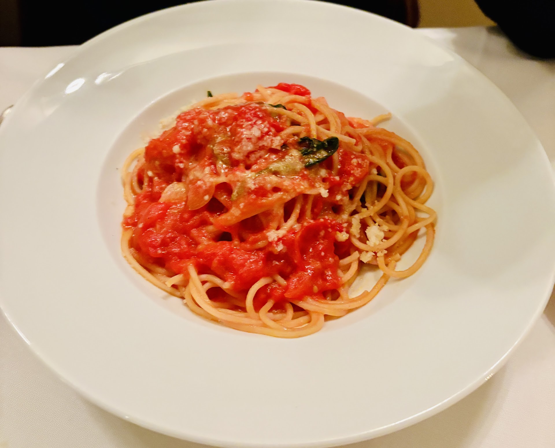 Our entrees came out and I will say the Pollo Milanese was paper thin (tasted like processed fake chicken) it came with a bean salad (I got a whole 10 beans). Then the pasta dishes were so small. At the time, our waitress was never to be seen again. She never mentioned anything and never came back. Then a woman came over and started to take over our table (never even told us her name). One of the bus boys cleared our drinks but he took my cousins’s drink that was still a quarter full.
