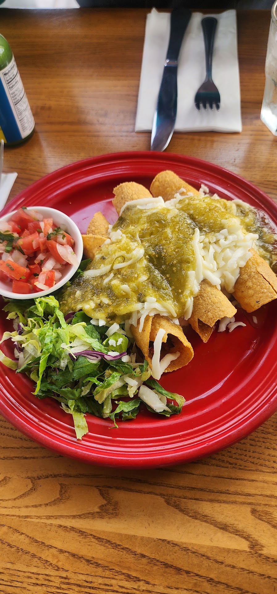 My family has been ordering pickup from this restaurant for several months. I usually order my food separately. Normally the chicken chimichanga’s, once or twice weekly. Never had any problems until recently (normally the food is great). The past two weeks I have noticed a change in preparation. Sometime the chimichanga’s were just plain overcooked and tasteless. Normally the give you two separate containers (one containing 2 chimichangas and salad on the side and the other had the beans and rice. Tonite I received the complete order in a small single container. They placed the hot chimichangas on top of the cold/wet salad. This caused the chimichangas to become cold and moist instead of hot and firmly crisp. This also caused the hot beans and rice to become cool instead of hot or even warm. The chimichangas were almost tasteless and difficult to cut and then pick up with the fork because they were wet from the salad which caused them to fall apart. My son told me that he too had noticed a not so good change in the food preparation recently. Like I said, I have had no problems with the food at this restaurant until recently and I will order from them again next week. If I experience the same or other problem, I will adjust this post accordingly and will recommend that people not patronize.